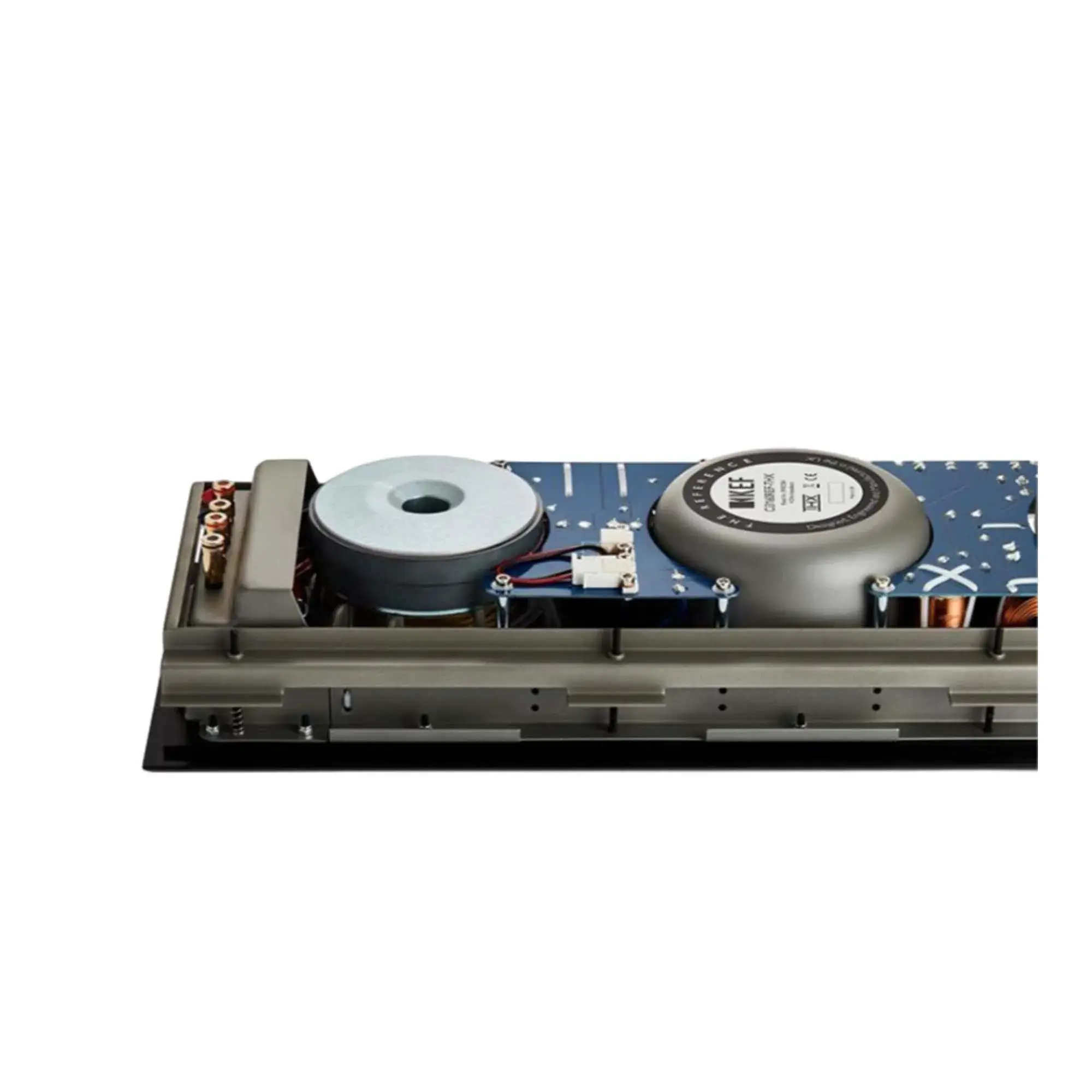 В Ci3160REF-THX центральное положение занимает 6.5-дюймовый двухполосный фирменный коаксиальный драйвер Uni-Q. В нем вентилируемый твитер с алюминиевым куполом расположен в центре диффузора динамика низких-средних частот. По краям разместились два 6.5-дюймовых низкочастотника с алюминиевыми диффузорами. Их объединяет прочная алюминиевая фронтальная стенка, эффективно сопротивляющаяся нежелательным вибрациям.