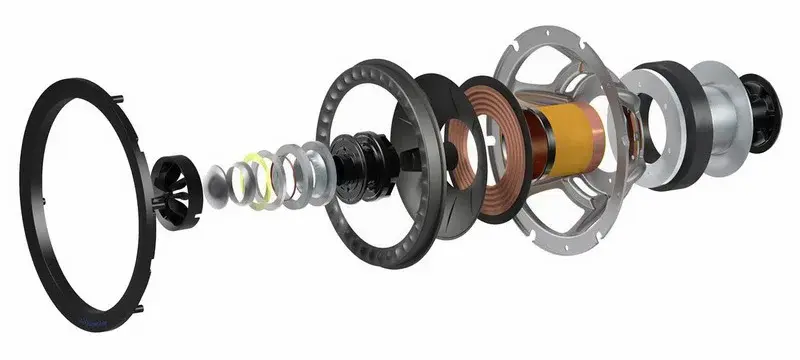 СЧ/НЧ драйвер имеет новую структуру конуса. Более жесткий материал лучше контролирует резонансы пограничных частот, уменьшая паразитные пики до -10 дБ по сравнению со старым, улучшая разборчивость в верхнем среднечастотном диапазоне. Новый большой подвес обеспечивает более длинный ход драйвера для меньших искажений на большей громкости и улучшенное поведение на граничных частотах. Улучшена центрирующая шайба. Жесткость оптимизирована для меньших искажений, что позволяет больше двигаться и лучше контролировать ход. Обеспечивает глубокий и контролируемый бас, идеально работающий в паре с ВЧ в массиве Uni-Q.