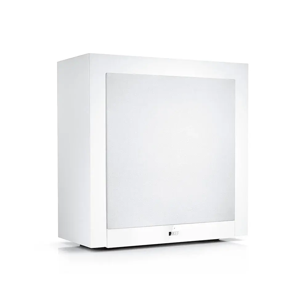 При конструировании сабвуфера KEF T2 Sub инженеры постарались выдержать направление на небольшую толщину корпуса, и хотя он получился гораздо толще сателлитов из этой серии, но общий стиль прослеживается четко. В закрытом корпусе глубиной 177 мм установлен 10-дюймовый динамик. Мощность сабвуфера составляет 250 Вт, а частота среза у него фиксированная — 250 Гц. Но зато есть переключатель Bass Boost с тремя положениями — 0, +3 и +6 дБ.