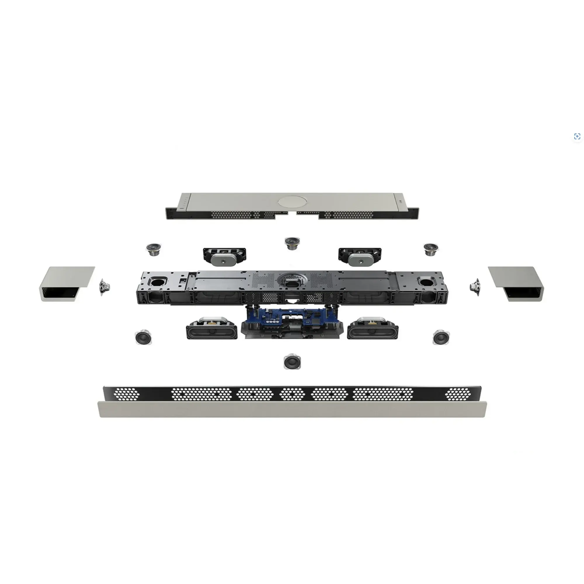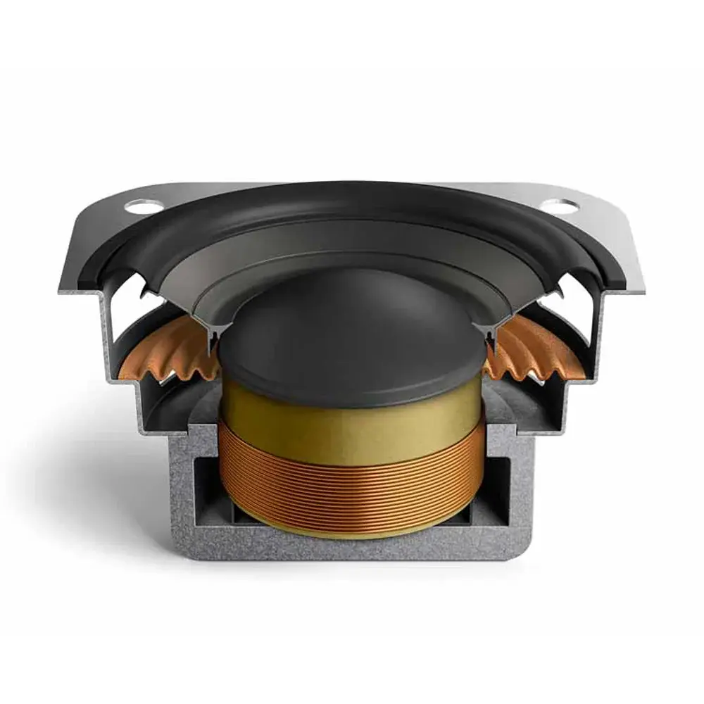Звуковая панель KEF XIO оснащена шестью динамиками Uni-Q MX, компактной версией хорошо зарекомендовавшего себя массива Uni-Q от KEF, разработанного для равномерного распределения звука по комнате. Низкочастотный выход обрабатывается парой динамиков P185 LF с использованием подвесов P-Flex и размещенных в конфигурации с подавлением силы. Такая конструкция направлена на снижение вибраций и искажений корпуса.