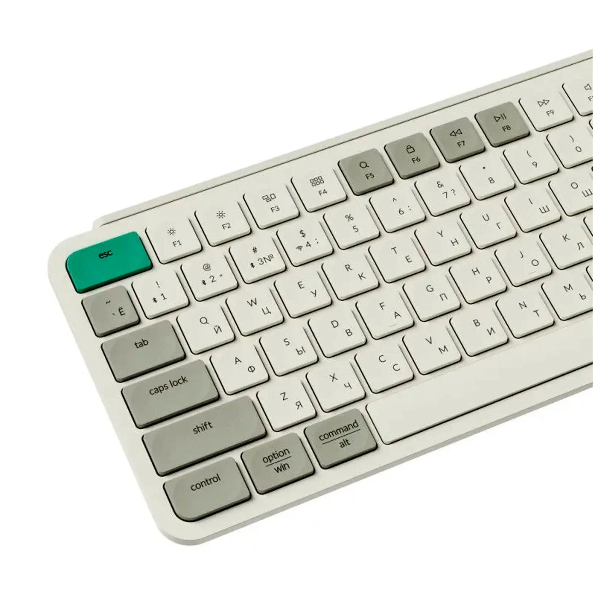 Предлагает раскладку Mac, оставаясь при этом совместимой с Windows. Она выделяется на рынке тем, что предоставляет те же мультимедийные и функциональные клавиши, что и клавиатуры Apple для пользователей Mac, но с улучшенной тактильной отдачей.