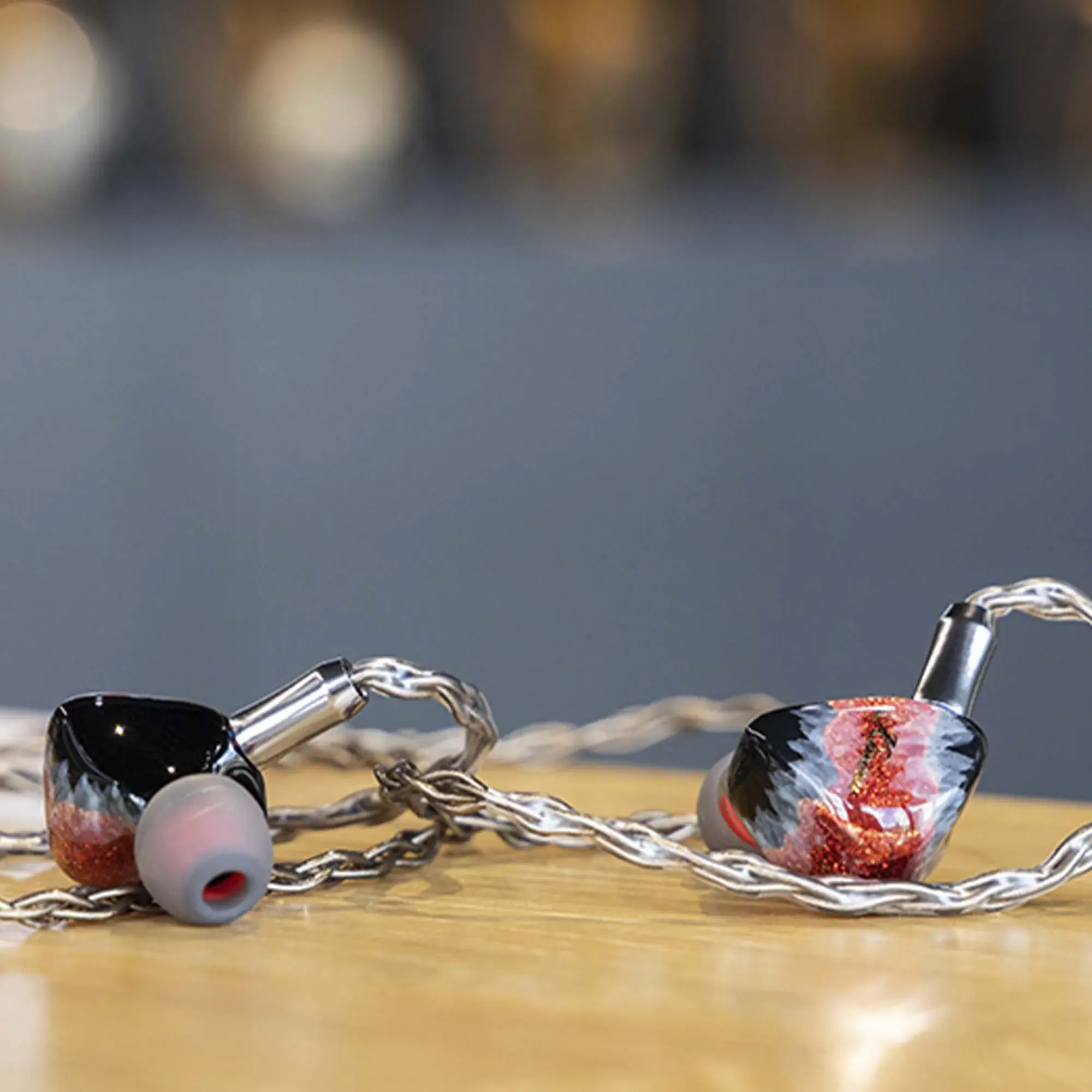 Kinera Imperial Norn - это гибридные наушники от Kinera с пятью драйверами. Imperial Norn имеет четыре сбалансированных драйвера и один динамический драйвер с каждой стороны. Kinera разработала свои новейшие продукты под влиянием богов из скандинавской мифологии. Норны (Norn) — три женщины, волшебницы, наделенные чудесным даром определять судьбы людей и богов, согласно скандинавской мифологии. Особенности: гибридные наушники (4BA + 1 динамический драйвер); съемный кабель; выразительный дизайн с ручной росписью; коннекторы: 0.78 2-pin; анатомическая форма корпуса. Динамический драйвер Kinera диаметром 7 мм поддерживает насыщенные и глубокие басы и создает широкую и насыщенную звуковую сцену. Драйвер оснащен высококачественными компонентами, такими как сильный кольцевой магнит N52 с магнитным потоком 1,5 Тесла. Катушка из чистой меди Daikoku, импортированная из Японии, и мембранный материал из композитного волокна с титановым покрытием. Композитная диафрагма с титановым покрытием быстро перемещается внутри полости динамика, создавая громоподобный, высококачественный басовый отклик. Четыре арматурных драйвера обеспечивают средние и высокие частоту, создающие реалистичный тембр в вокале и невероятное точное воспроизведение деталей. Kinera выбрала высокопроизводительные драйверы производителя Knowles, для сопряжения с динамическим драйвером. Отклик отличается скоростью и высоким разрешением с естественной тональностью. Эта комбинация из 4 премиальных драйверов Knowles BA обеспечивает Norn великолепное расширение и позиционирование инструментов с максимальной точностью и детализацией. Акустические особенности Передняя полость корпуса Norn состоит из специально разработанного кроссовера, устраняющего любые возможности искажений при работе нескольких драйверов. Звуководы имеют разумную длину, чтобы никоим образом не влиять на звук, обеспечивая точную частотную характеристику для пользователей в широком диапазоне частот. Ручная роспись плавно переходит от передней панели фейсплейта на остальную часть корпуса и обладает светоотражающими свойствами. Дизайн Наушники Kinera Imperial Norn невероятно красивые, очень эргономичны и обеспечивают наилучшую посадку. Пара полностью окрашена вручную для получения уникального внешнего вида с комбинацией привлекательных цветов, таких как красный, оранжевый и черный. Съемный кабель Kinera Imperial Norn используют универсальный кабель с 2-pin разъемом (0.78 мм). Поставляемый в комплекте кабель изготовлен из высококачественной посеребренной меди 26AWG. Кабель состоит из 8 проводников общим количеством 192 жил. Внешняя оплетка кабеля удобная, мягкая и экологичная. Кабель оснащен 2.5-мм балансным разъемом и предназначен для работы с серьезным источником, например плеером от Astell&Kern. Тем не менее, если слушатель не располагает плеером или усилителем с данным разъемом, есть возможность воспользоваться комплектными адаптерами – 3.5-мм или балансный 4.4-мм. Комплектация: наушники Kinera Imperial Norn; посеребренный кабель 2-pin - 2.5 мм; переходники на 3.5 мм и балансный 4.4 мм; чехол для хранения и транспортировки; сменные насадки (пенные и силиконовые); документация.