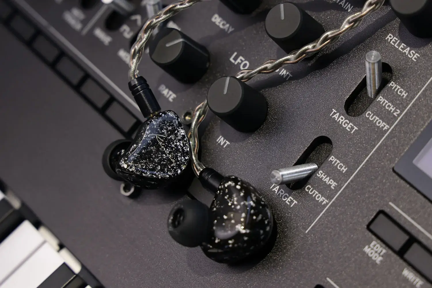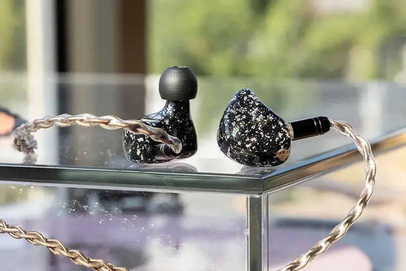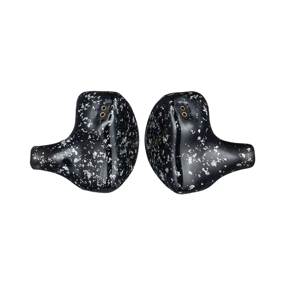 Корпус достаточно компактный для 8-драйверов. Материал корпуса из примеси смолы и акрила и имеют дизайн над ухом, отделанный черным цветом с серебристыми блестками и логотипами с глянцевой поверхностью. Он также дополнен лаконичным, но стильным узором, напоминающим звездное небо. Наушники великолепно смотрятся благодаря своему базовому цвету и деталям с частицами. Логотип Kinara в области лицевой панели красиво завершает дизайн.