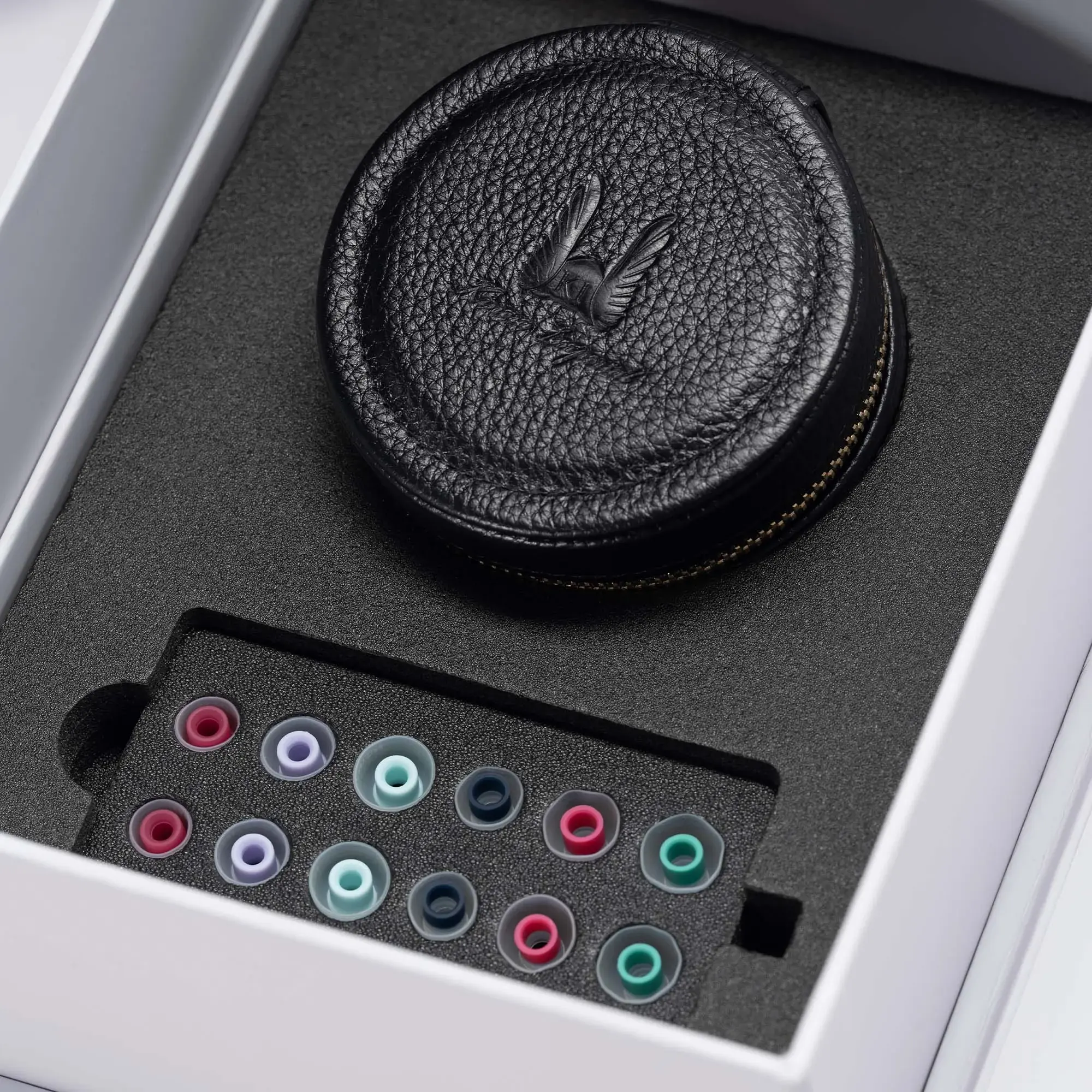 Kinera ThorKing — это настоящий шедевр инженерии в мире аудио, представляющий собой проводные гибридные внутриканальные наушники, которые сочетают в себе передовые технологии и изысканный дизайн. Эти наушники созданы для любителей музыки, которые ценят высокое качество звука и комфорт, и готовы инвестировать в премиальный звуковой опыт. Особенности: проводные наушники с превосходным звуком, комфортом и качеством сборки; конфигурация драйверов: 1 динамический драйвер, 6 сбалансированных арматурных драйверов, 4 электростатических драйвера; частотный диапазон 5 Гц – 50 000 Гц; чувствительность: 110 дБ; импеданс: 14.7 Ом; тип разъёма: 4.4 мм, сбалансированный кабель. Черпая вдохновение в знаменитой сцене финальной битвы «Рагнарок» в норвежской мифологии, а именно в сражении между Тором, богом грома, и Йормунгандром, великим змеем, которое разворачивается на земле Асгарда, где темное поле битвы освещается двумя ослепительными вспышками огня. Дизайнеры Kinera впитали и усовершенствовали стили оформления антикварных украшений средневекового периода, георгианской эпохи и стиля барокко. Сложные узоры, смелые цветовые сочетания и сильный мифологический колорит объединяют современные стили дизайна и технологии обработки ювелирных изделий, чтобы представить мифологические элементы истории Рагнарока. Чтобы создать сложные детали дизайна лицевой крышки для ThorKing, команда дизайнеров Kinera отправилась в путешествие, изучая ювелирное мастерство. Для создания песчаной золотой текстуры был использован метод литья по выплавляемым моделям, а также ручная гравировка, формовка и пескоструйная обработка. Затем она была украшена деталями в стиле эмали, гальваническим покрытием из золота 24 карата и двумя термообработанными темно-красными цирконами, установленными на ободок. В результате многочисленных тщательных процедур постепенно проявилась текстура лицевой крышки. При свете яркий рубиново-красный цвет становился еще более выразительным на фоне золота и глубокой черной эмали, излучая ощущение сдержанной роскоши. Основываясь на впечатлениях от силы Тора, грома и молний, команда акустических инженеров Kinera взяла за основу ThorKing микро-V-образную настройку. С точки зрения сочетания и распределения динамиков, она отличается редкой высокой плотностью и ярко выраженным многослойным разрешением. Его звуковое поле широкое и открытое, прозрачное и естественное, с чистым и деликатным фоном. Он превосходно восстанавливает детали, обладает полной и достаточной мощностью баса, широким динамическим диапазоном с сильной выразительностью, быстрыми и точными переходными реакциями. Он может с легкостью справиться не только с широким спектром вокальной поп-музыки, но и с крупными классическими симфониями, небольшими музыкальными произведениями, камерной музыкой и т.д. За воспроизведение низких частот отвечает 10-миллиметровый композитный динамик из полимерного волокна. Материал из полимерного волокна обладает отличной прочностью, высокой жесткостью и низкой плотностью, что позволяет повысить эффективность линейных колебаний динамика и восстановить оригинальный тембр. В сочетании с передней акустической полостью, изготовленной методом 3D-печати, повышается эффективность снижения давления в динамике. Между тем, рационально рассчитанный диаметр канала ул