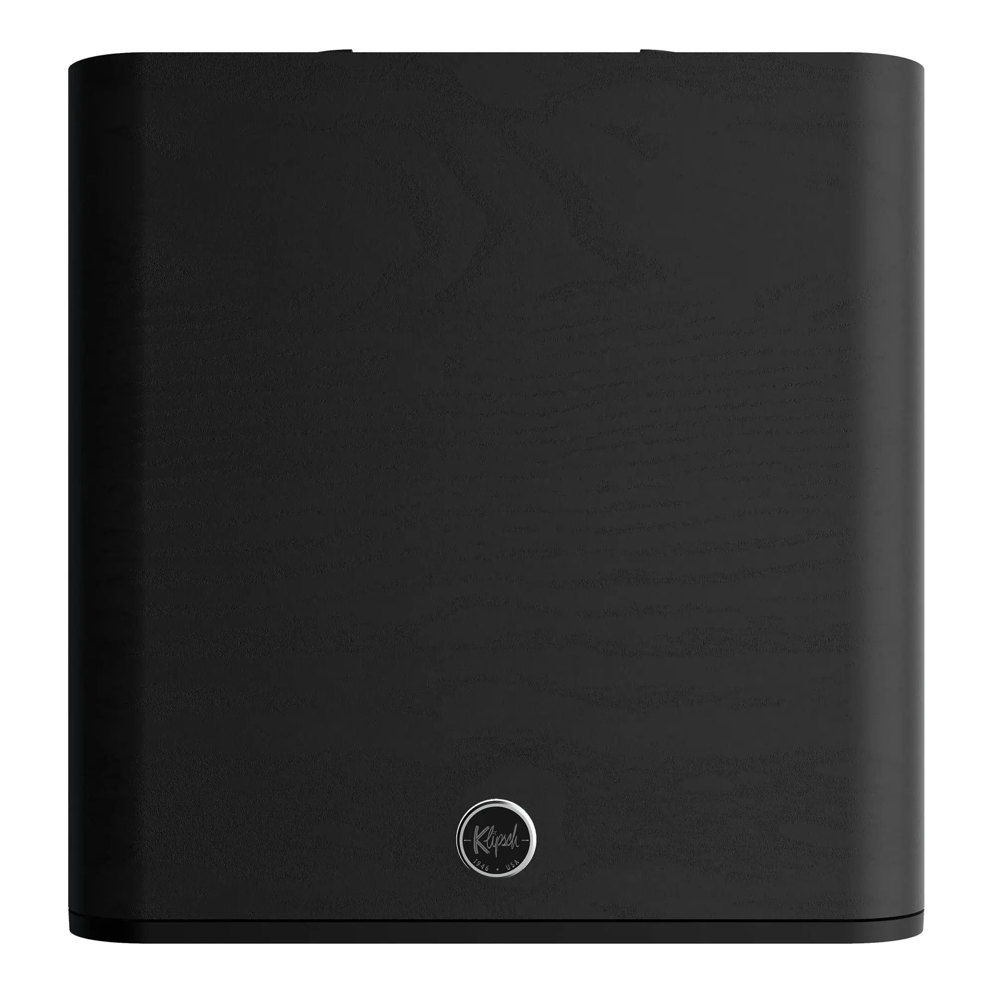 Klipsch Flexus Subwoofer - беспроводной сабвуфер. Акустика представлена в отделке корпуса под дерево с металлической сеткой и черной тканевой решеткой.