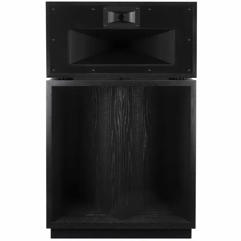 В верхней секции корпуса находится дюймовый твитер K-771 (новая разработка) и 2-дюймовый компрессионный СЧ-драйвер K-55-X. Оба динамика имеют феноловые диафрагмы и помещены в разные по размерам экспоненциальные рупоры. В нижней басовой секции установлен 15-дюймовый низкочастотный динамик K-33-E, однако, в отличие от Klipschorn, он направлен в тыльную часть кабинета. Данный НЧ-излучатель использует экспоненциальный свернутый рупор, а в качестве материала для его конусного диффузора задействован волоконный композит. В заднюю стенку верхней части корпуса встроены четыре высококачественные винтовые клеммы, с помощью которых можно организовать двухкабельное подключение (бивайринг или биампинг). В схемах фильтров используются элементы премиум-класса. Чувствительность АС составляет 105 дБ. Благодаря такому высокому показателю данный напольник сможет отлично проявить себя даже в паре с ламповым усилителем небольшой мощности.