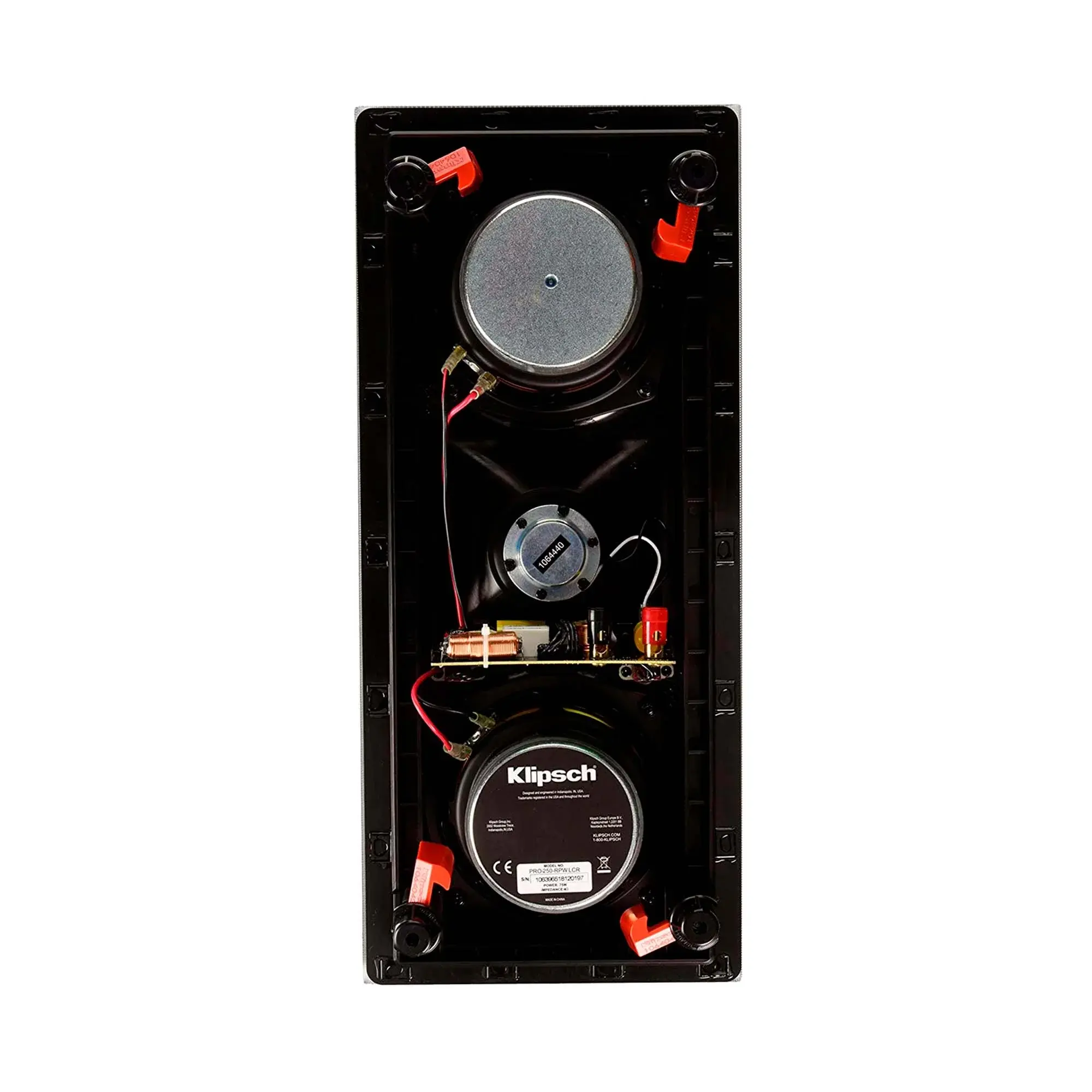 Klipsch PRO-250RPW LCR – новая 2-х полосная, встраиваемая акустика, предназначенная для монтажа в стены в качестве центрального канала в домашнем кинотеатре. PRO-250RPW LCR оснащена титановым ВЧ диффузором (25 мм) в гибридном рупоре Tractrix и НЧ диффузорами (133 мм) из полипропилена инжекционного литья с добавлением керамики на резиновом подвесе Cerametallic.