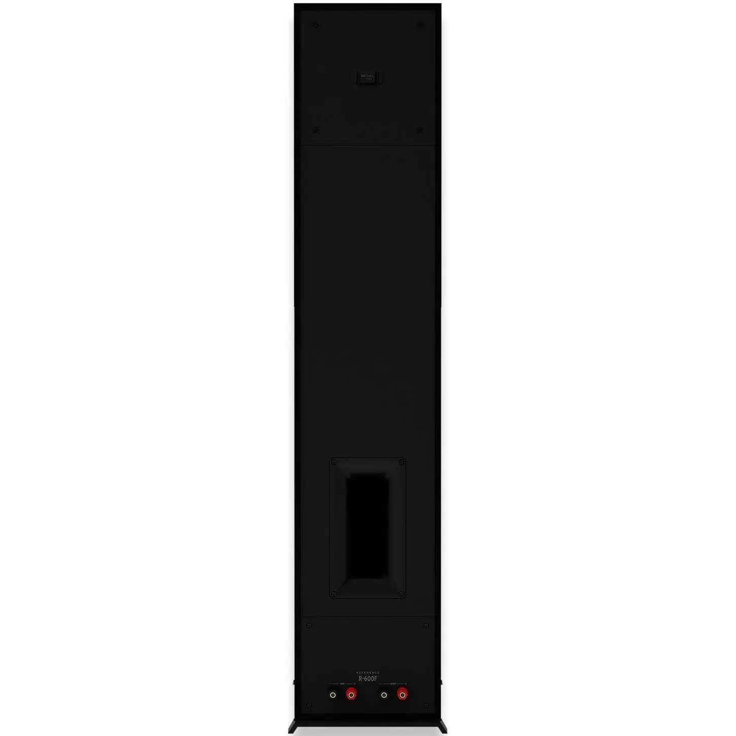 Klipsch R-600F оснащена фазоинвертором Tractrix Port, который выведен на заднюю панель. Фазоинвертор отличается малыми акустическими шумами и высокой эффективностью. Корпус колонки изготовлен из MDF и усилен внутренними стяжками для гашения вибраций стенок. Опоры в колонке установлены под углом к основанию, чтобы повысить ее устойчивость. Для подключения АС к усилителю предусмотрена пара винтовых клемм, расположенных в самом низу задней панели.