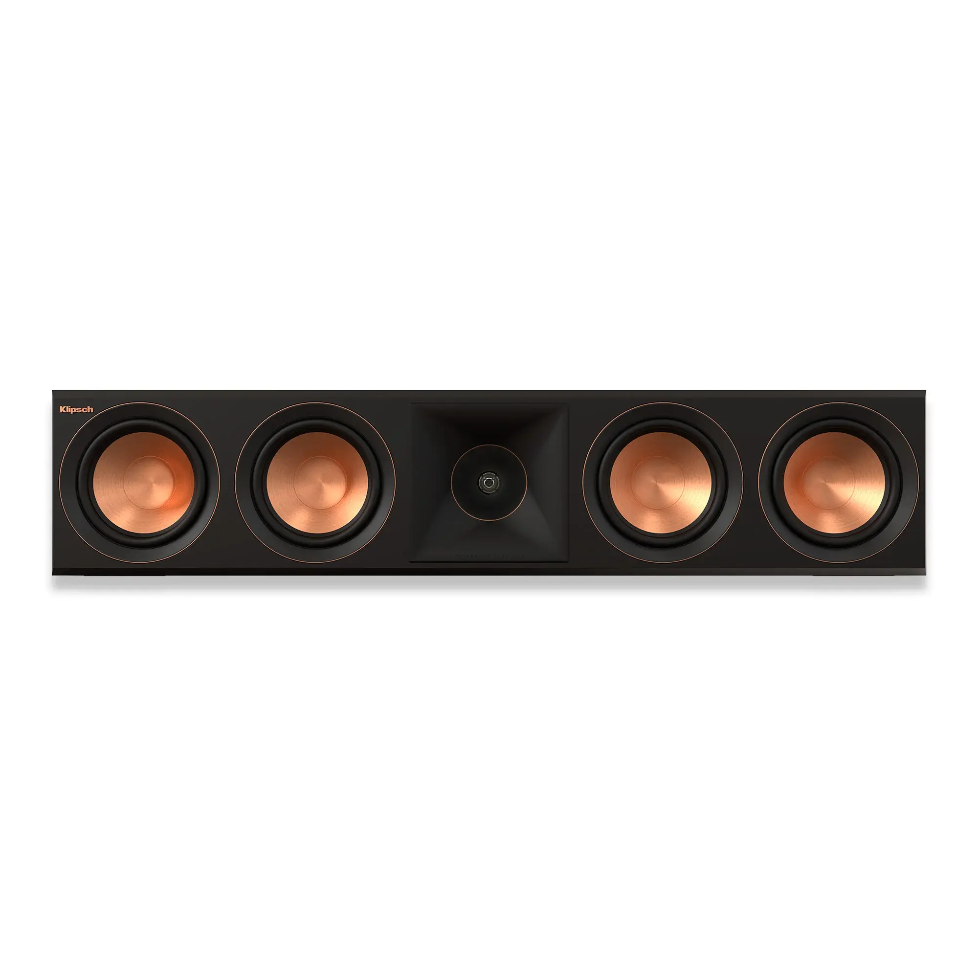 На передней панели Klipsch RP-504C II находятся четыре динамика диаметром 5.25 дюйма с диффузорами Cerametallic, с внешним медным покрытием. Такие динамики стали традиционным компонентом акустики Klipsch серии Reference и придают колонкам фирмы вполне узнаваемый внешний вид. Диффузоры Cerametallic при небольшой массе обладают высокой жесткостью, что позволяет им создавать значительное звуковое давление без слышимых искажений. На задней панели находится фазоинвертор Tractrix, который обладает высокой эффективностью и позволяет дополнительно расширить диапазон воспроизводимых низких частот.