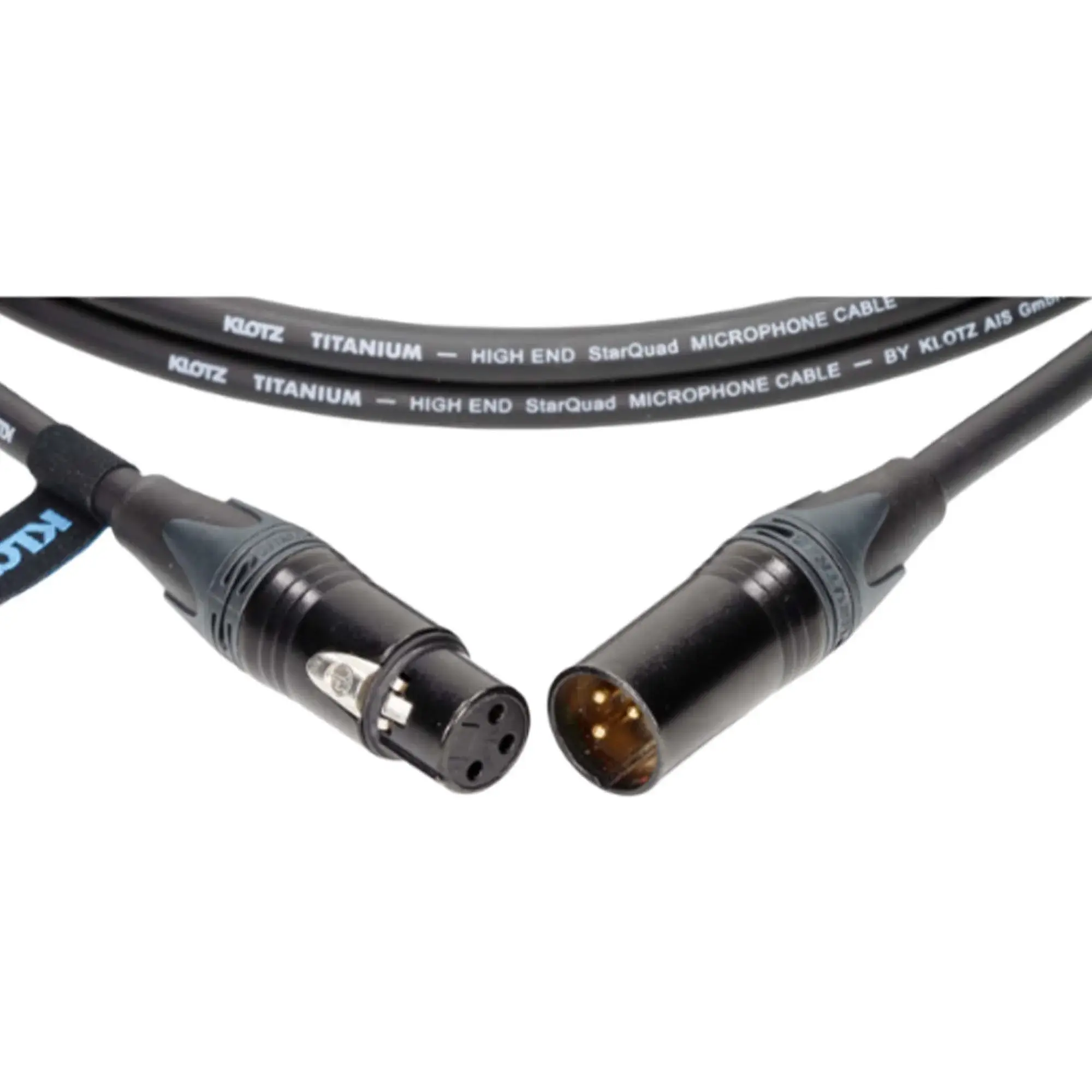 Klotz TITANIUM StarQuad TI-M0750 - микрофонный кабель, XLR (f) / XLR (m), 3-pin позолоченные контакты, сечение 4 х 0.34 мм2, внешний диаметр 7.8 мм, разъёмы Neutrik, длина 7,5 м, цвет черный