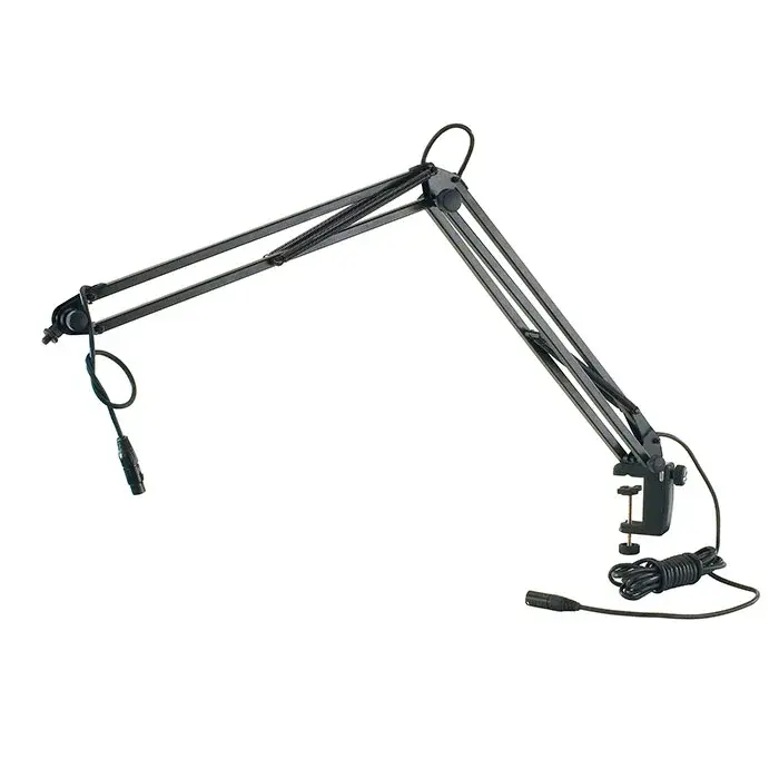 Компания K&M представляет микрофонную стойку-пантограф K&M 23850-321-55. Стойка прекрасно подойдёт как для профессионального, так и повседневного использования. Стойка надёжно крепится к столешнице шириной до 48 мм при помощи струбцины. Оснащена микрофонным кабелем длиной 5 м со стандартными разъёмами XLR. Особенности: длина микрофонного кабеля: 5 метров; тип крепежа: струбцина; подключение микрофона: 3-pin XLR; материал: сталь; максимальная грузоподъёмность: 800 г; цвет: черный; вес: 1.72 кг. Комплектация: микрофонная стойка; документация;