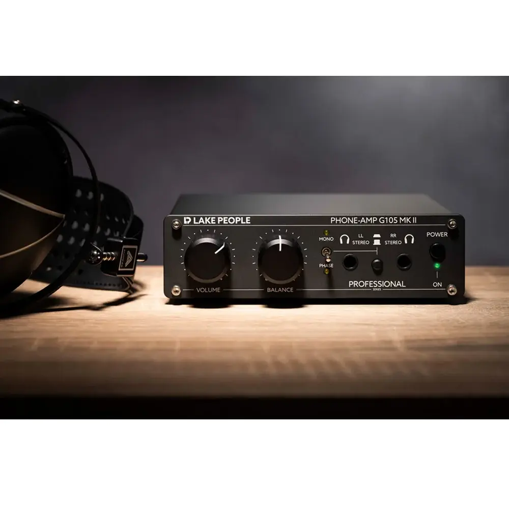 Lake People G105 MKII — это компактный студийный усилитель для наушников с высочайшим качеством звука. G105 MKII оптимизирован для максимально низкого уровня шума и искажений и поддерживает работу с двумя парами наушников одновременно.