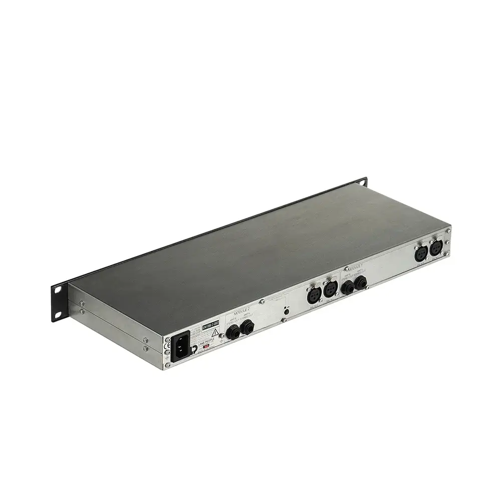 F388-2-Q — это мощный и надежный усилитель для наушников в рэковом 19-дюймовом форм-факторе. На задней панели расположены два модуля с симметричными стереовходами. Сигнал из первого модуля может быть отправлен и на второй модуль с помощью переключателя. Доступны четыре независимых стереоусилителя для наушников, каждый со своим регулятором громкости и баланса.