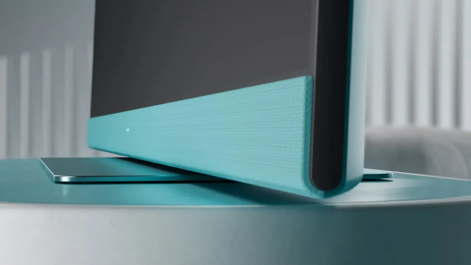 Телевизоры Loewe WE. SEE прекрасны с любой стороны — яркая звуковая панель, фирменный шильдик с логотипом WE, яркая задняя панель, настольная подставка, в которой прячутся кабели.