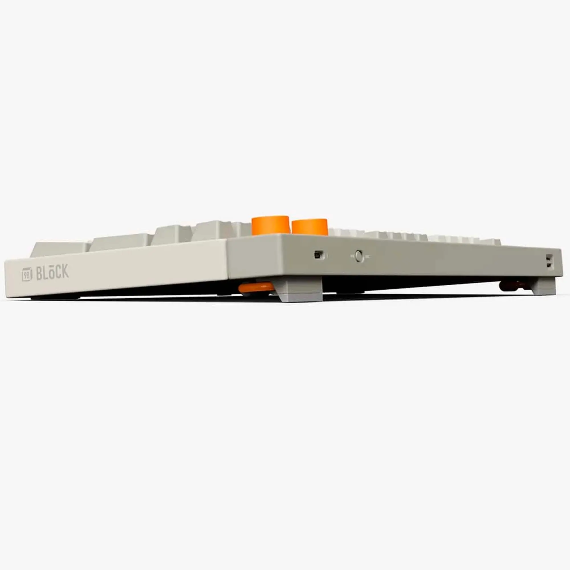 Клавиатура Block, воплощающая принцип минимального дизайна для максимальной практичности, имеет мягкую серую основу с теплыми оранжевыми бликами.