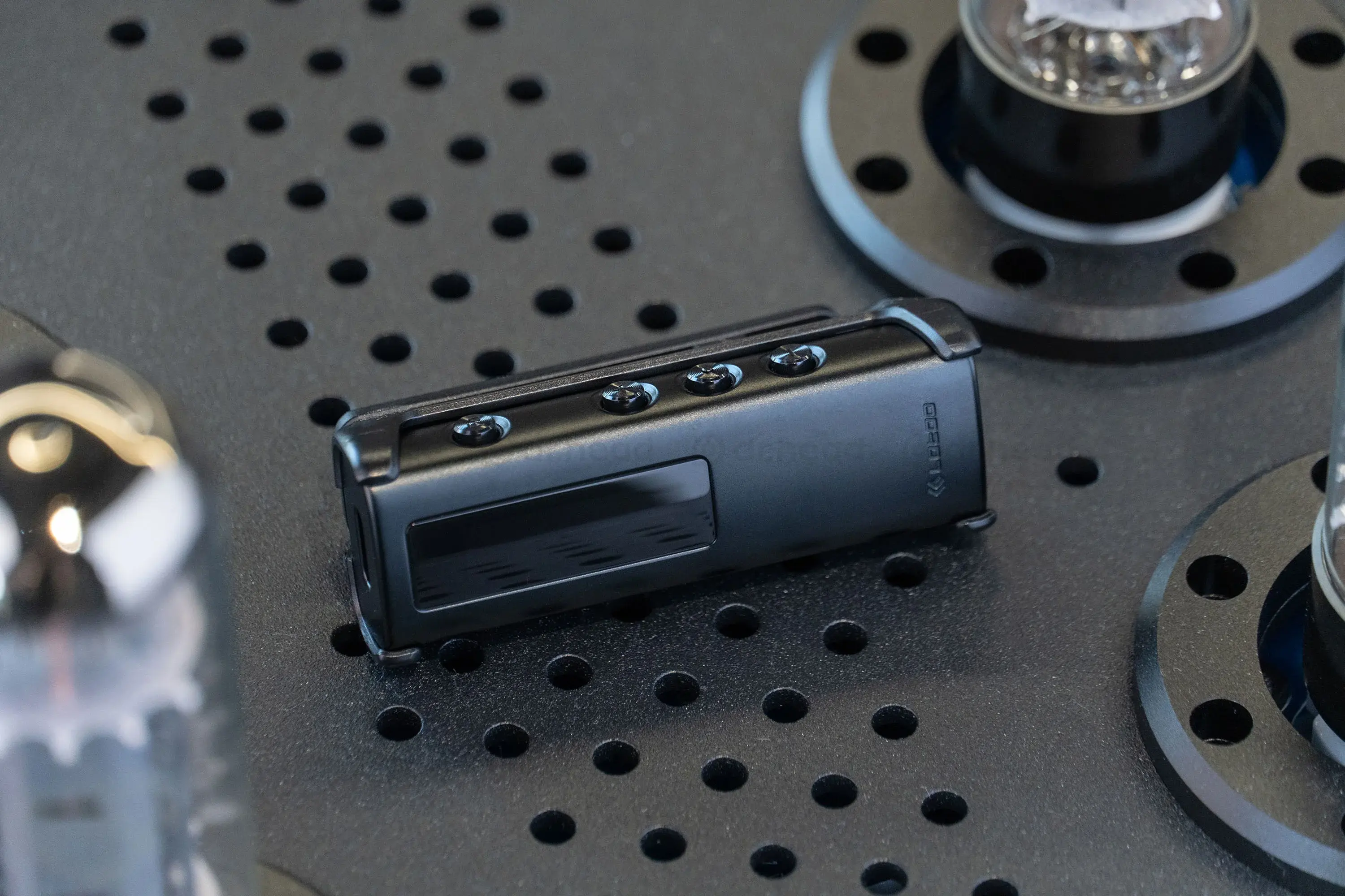Усилитель для наушников оснащен OLED-дисплеем, который отображает разрешение, громкость, настройку усиления и выбранную предустановку. Используемый ЦАП AKM имеет максимальное разрешение 32 бита и 384 кГц в PCM, DSD до DSD128 и поддерживает 4x MQA. Уникальной особенностью этого усилителя для наушников является разъем Pentacon 4.4 мм, который позволяет подключать наушники со сбалансированным кабелем.
