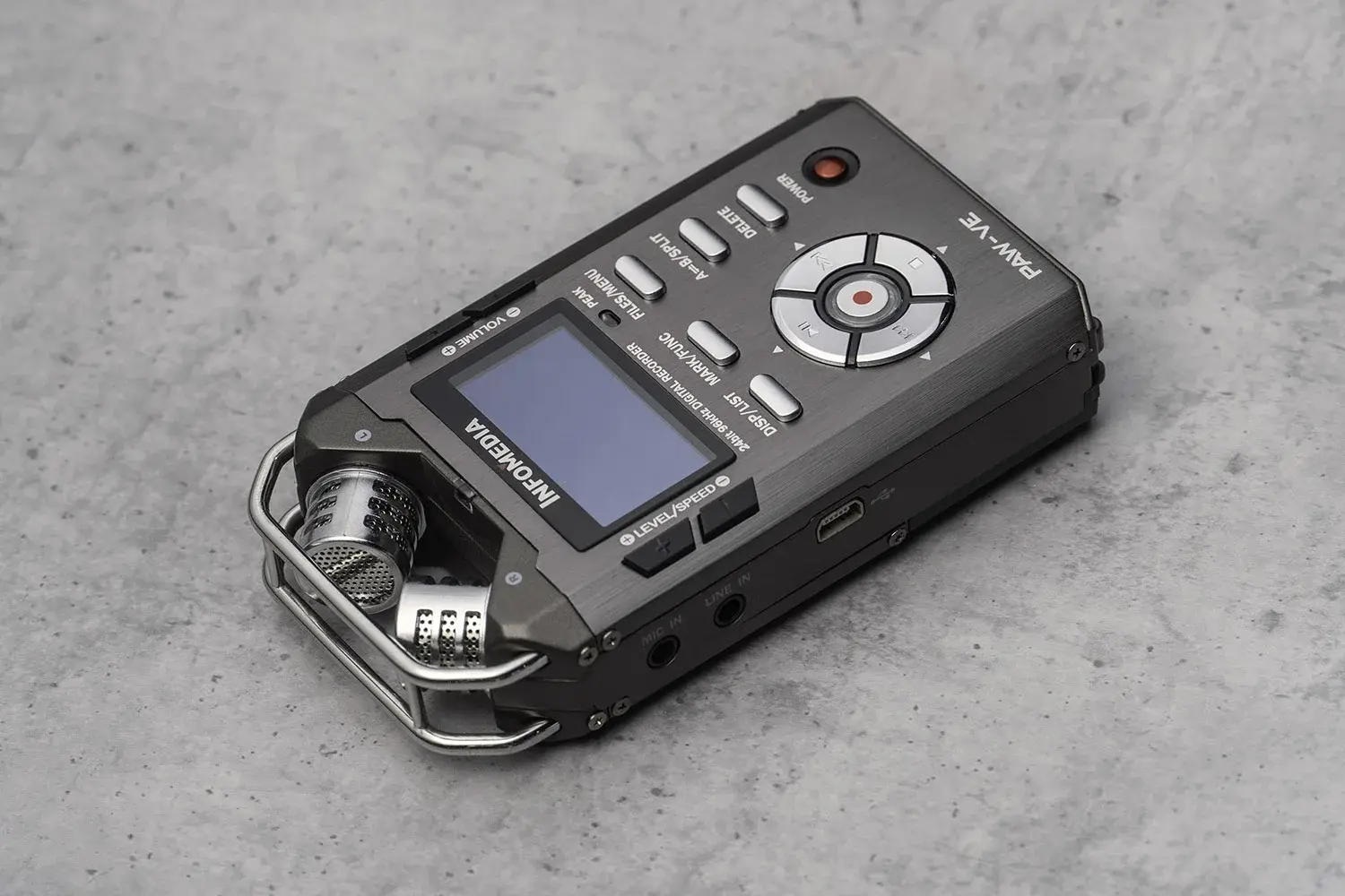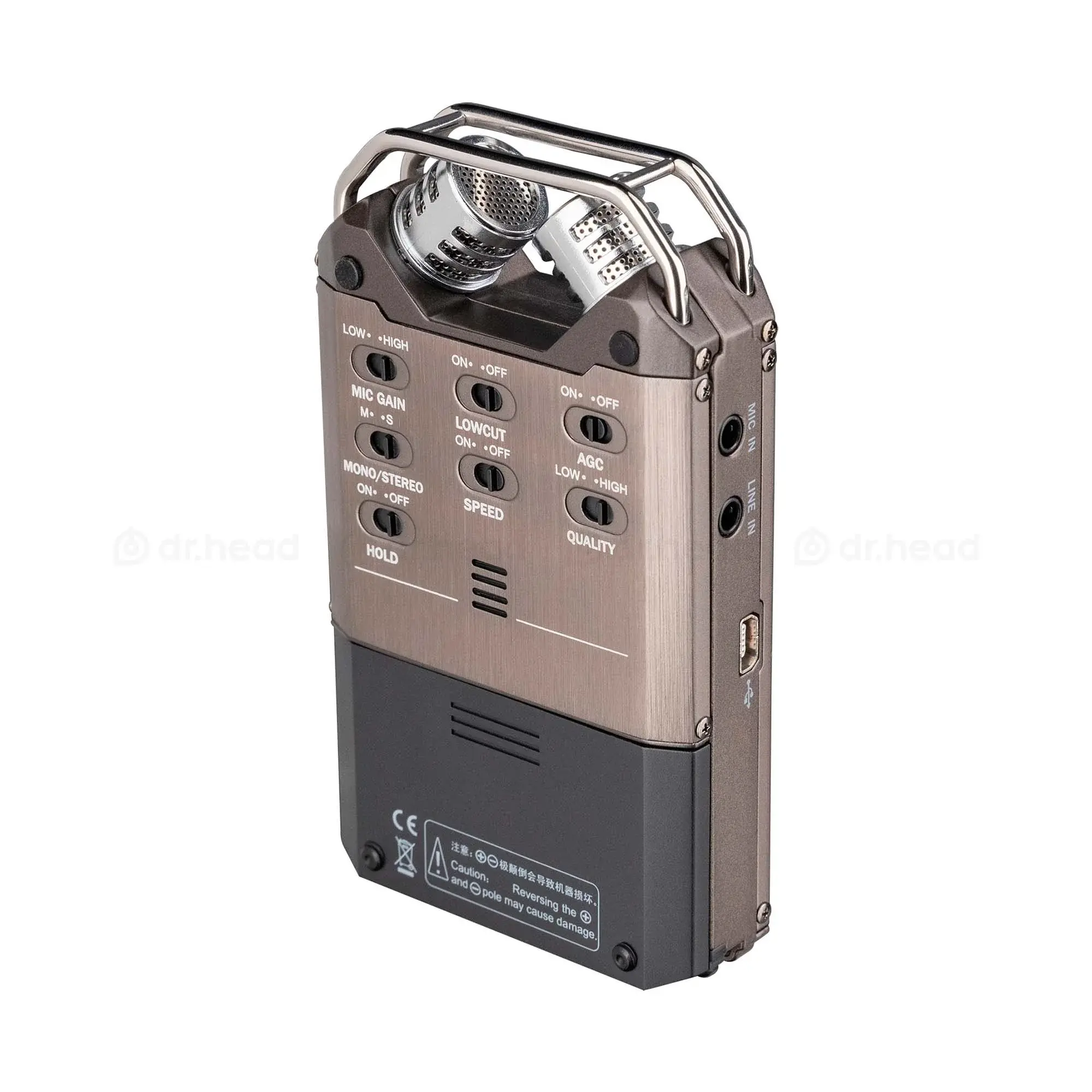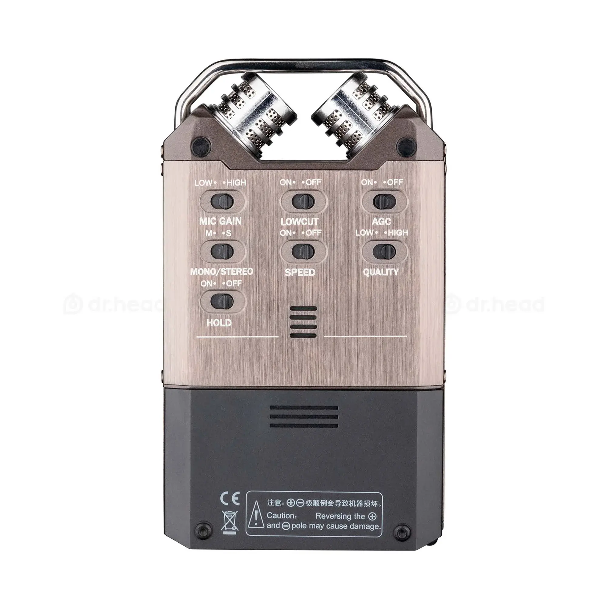 Специальные откосы и углы корпуса подобраны во время проведения множества испытаний. Благодаря этому удалось подобрать идеальное сочетание при отражении звуковых волн во время записи. Расположение кнопок управление выбрано для удобства пользования одной рукой и даже в перчатке. Оптимальные размеры и вес позволяют пользоваться устройством комфортно во время работы.