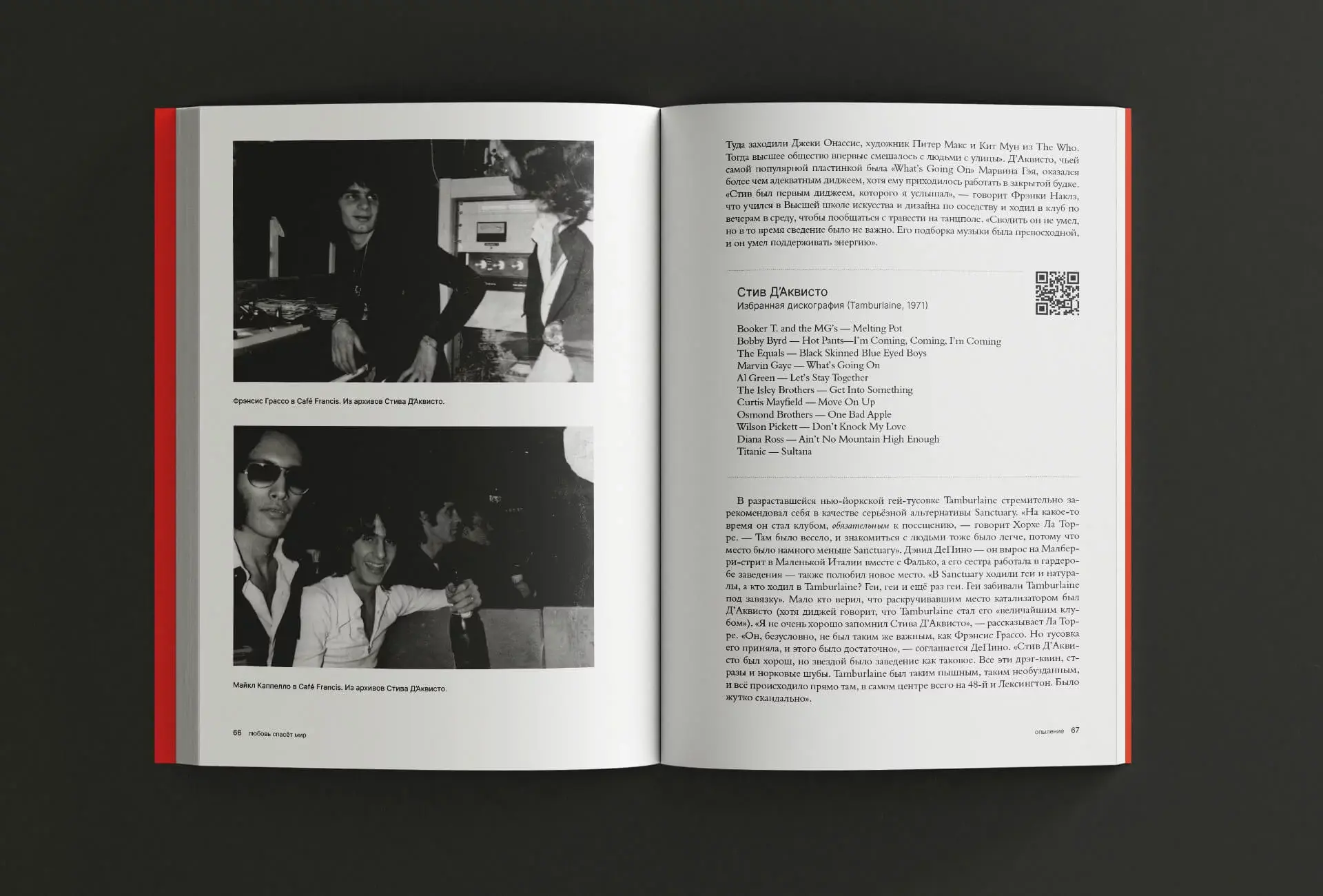 Рассказы о ярких ночных приключениях, радикальном подходе к музыке и возникновении важных заведений эпохи, таких как Loft Дэвида Манкузо, Gallery Никки Сиано, Paradise Garage Ларри Левана, Warehouse Фрэнки Наклза, Studio 54 и многих других, перемежаются подробным описанием самых влиятельных диджеев того времени и пластинок, которые они любили крутить, а также лейблов, музыкантов, вокалистов, продюсеров, ремиксёров, промоутеров и танцоров, которые подпитывали неутомимый двигатель танцевальной музыки.