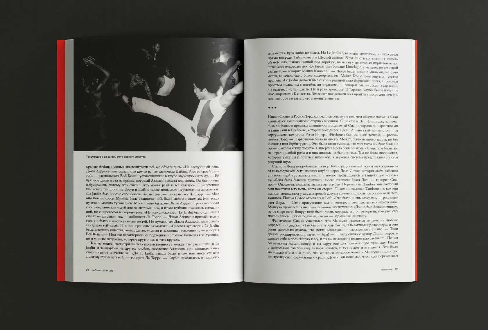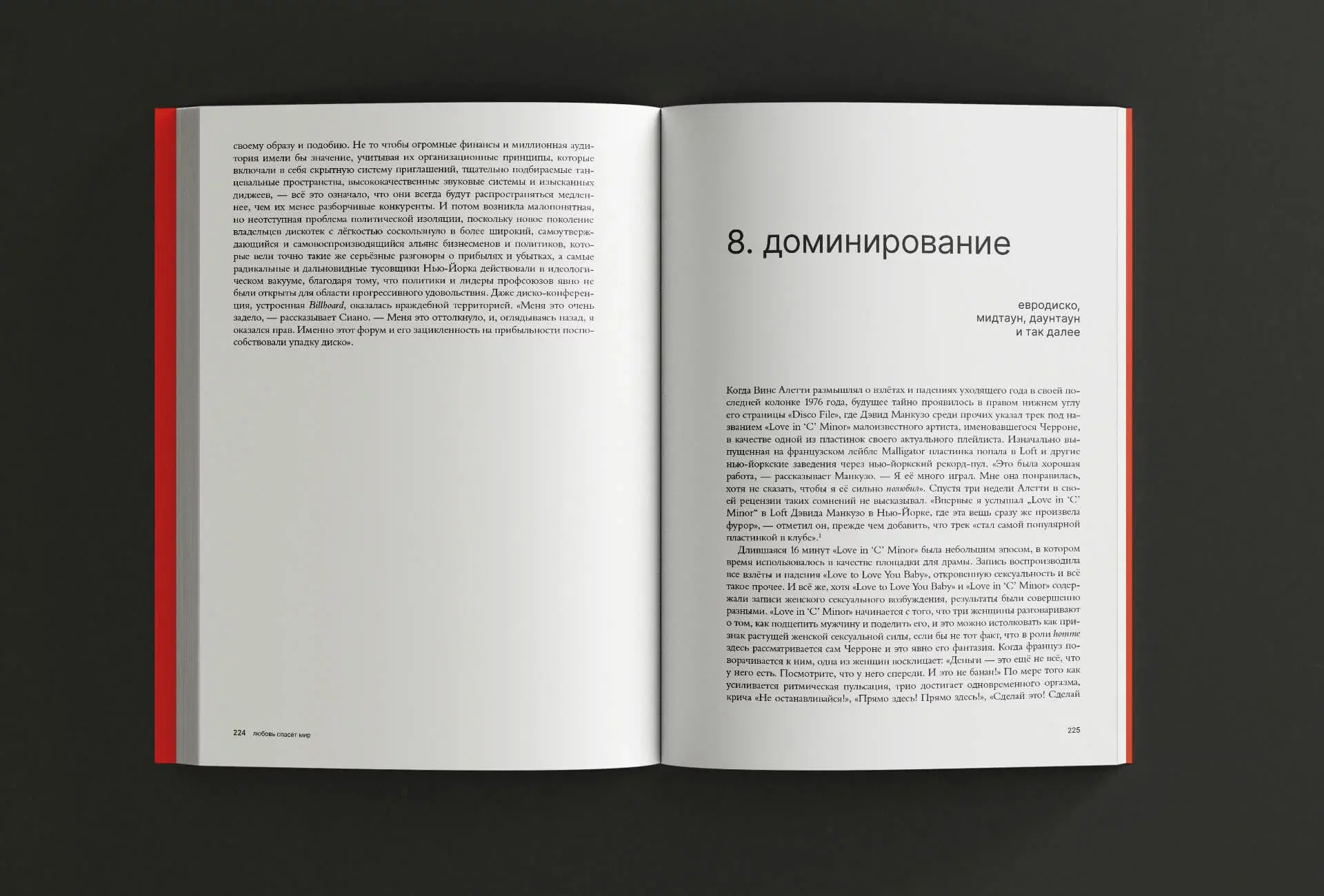 «Любовь спасёт мир» Тима Лоуренса в подробностях фиксирует становление и бурное развитие американской танцевальной культуры 1970-х, которая подарила миру диско и многочисленные его производные. Книга аккуратно и точно описывает культурную эволюцию — от андеграундных корней культурной сцены Нью-Йорка до безвкусного расцвета в центре Манхэттена и основных точек на карте остальной Америки — Чикаго, Бостона, Сан-Франциско, Лос-Анджелеса и Майами.
