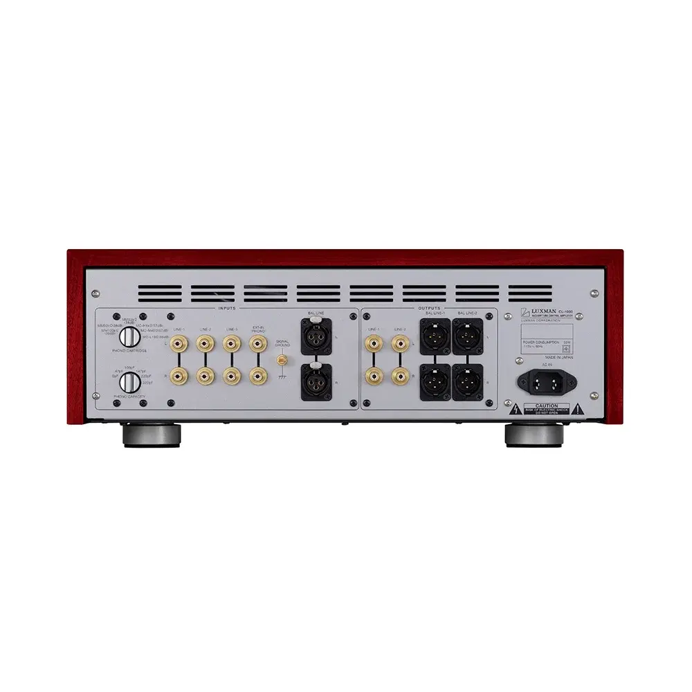 Большой опыт работы Luxman с трансформаторами, установленными в цепи прохождения сигнала, выявил один недостаток: остаточные магнитные поля в сердечниках. По этой причине CL-1000 колеблется и размагничивает сердечники трансформатора каждый раз, когда владелец включает питание.