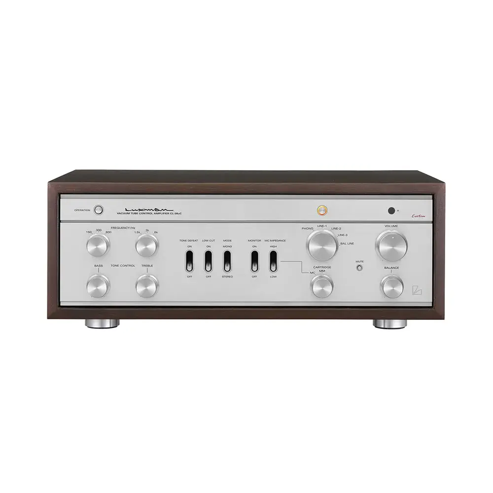Под внешним деревянным корпусом Luxman CL-38uC скрывается металлическое шасси, которое надежно защищает его схему от вибраций и электрических помех. Предусилитель построен по отлично зарекомендовавшей себя схеме SRPP для всех каскадов, которая позволяет получить максимальное качество звука в классе A. В схеме предусилителя используются отборные компоненты аудиофильского класса – лампы JJ Electronic, конденсаторы Nichikon. Аппарат оснащен встроенным фонокорректором для MM и MC-звукоснимателей, который осуществляет точную RIAA-коррекцию и подходит для большинства моделей картриджей. Подключение MC-головок происходит через встроенный повышающий трансформатор, а для точного согласования с различными звукоснимателями предусмотрена независимое переключение коэффициента усиления.