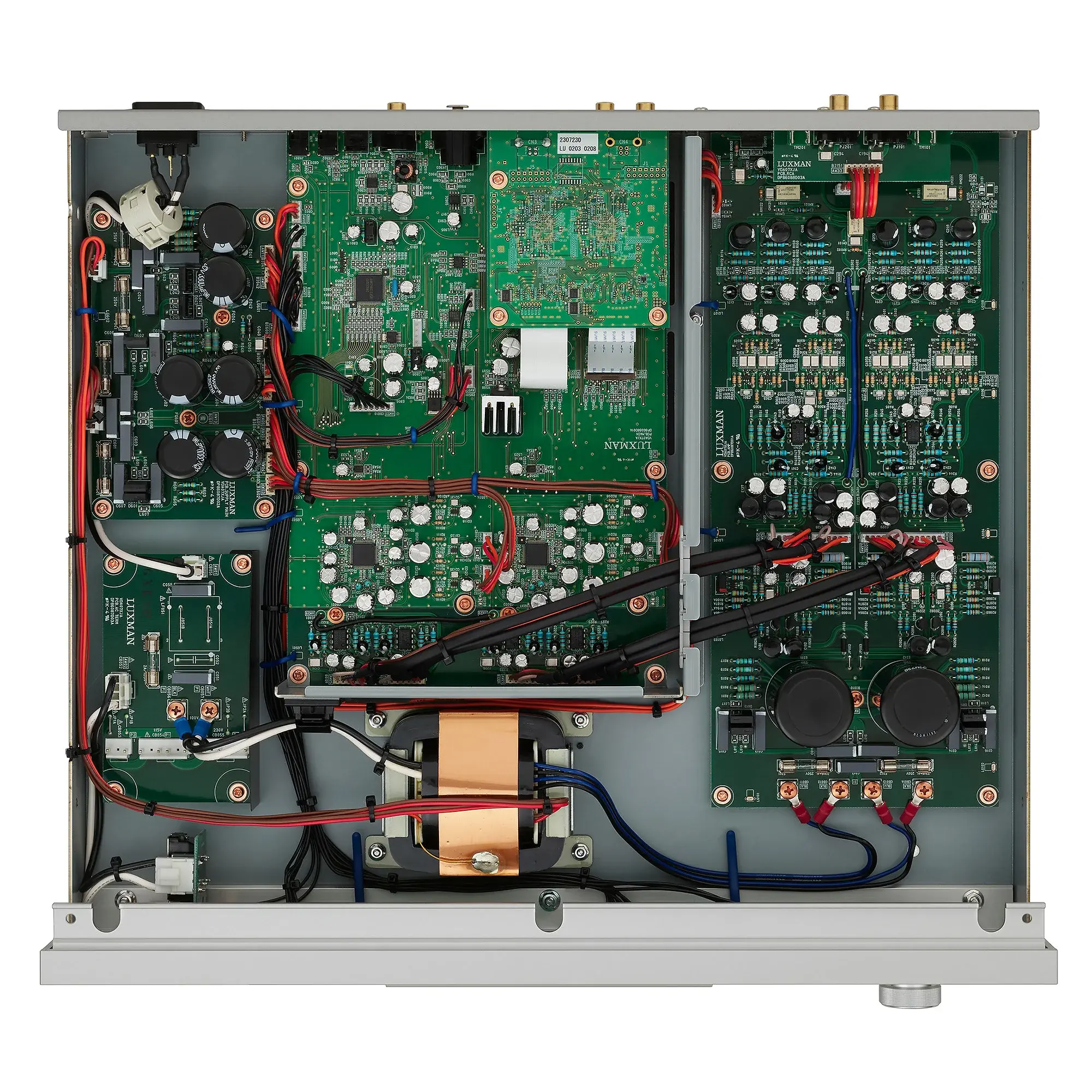 Внедрив функции с низким уровнем джиттера, оптимизированные для каждого входа, инженеры превзошли ожидания в отношении высококачественной передачи цифрового сигнала. Кроме того, в качестве функции, позволяющей слушателю выбрать предпочтительный стандарт воспроизведения звука, встроены два режима цифрового фильтра для данных PCM (MQA bypass) и два режима аналогового фильтра для данных DSD. Аналоговый выходной каскад, который определяет конечное качество компонента, обладает выдающимися характеристиками преобразования тока в напряжение, получая дифференциальный выходной сигнал от каждого чипа ЦАП BD34301KEV, работающего в монорежиме, как и в цифровых проигрывателях высокого класса LUXMAN, а также высококачественную буферную схему и полностью сбалансированную выходную архитектуру, что еще больше улучшает производительность. сопротивление выходного аудиосигнала. Таким образом, устройство управляет компонентами, такими как встроенный усилитель или усилитель управления. Компания LUXMAN придерживается философии дизайна, в которой особое внимание уделяется каждой детали, такой как нерегулярная схема трассировки печатной платы, обеспечивающая плавную передачу сигнала, внутренняя проводка с помощью кабеля OFC, экранированная конструкция корпуса, блокирующая цифровые помехи, и недавно внедренные бесшумные реле.