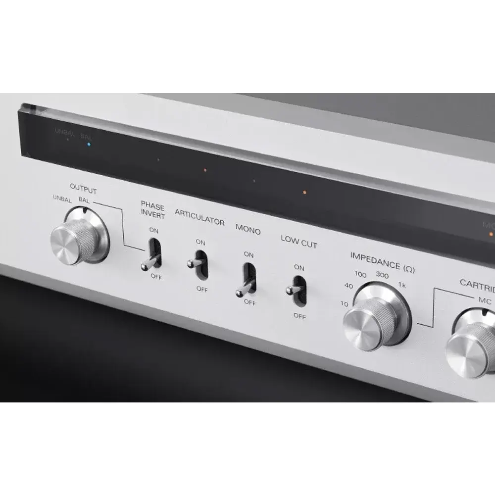 Он также поддерживает сбалансированные входы, которые могут принимать дифференциальные сигналы без потери выходной энергии картриджей MC. Устройство обеспечивает эффективное разделение левого и правого сегментов и значительное улучшение позиционирования. В дополнение к одному балансному (XLR) входу, он оснащен двумя несимметричными (RCA) разъемами. К нему можно подключить до трех аналоговых проигрывателей. Выход также включает в себя один балансный (XLR) и два несимметричных (RCA) разъема, что позволяет создавать разнообразную среду аналогового воспроизведения путем подключения к различным усилительным устройствам.