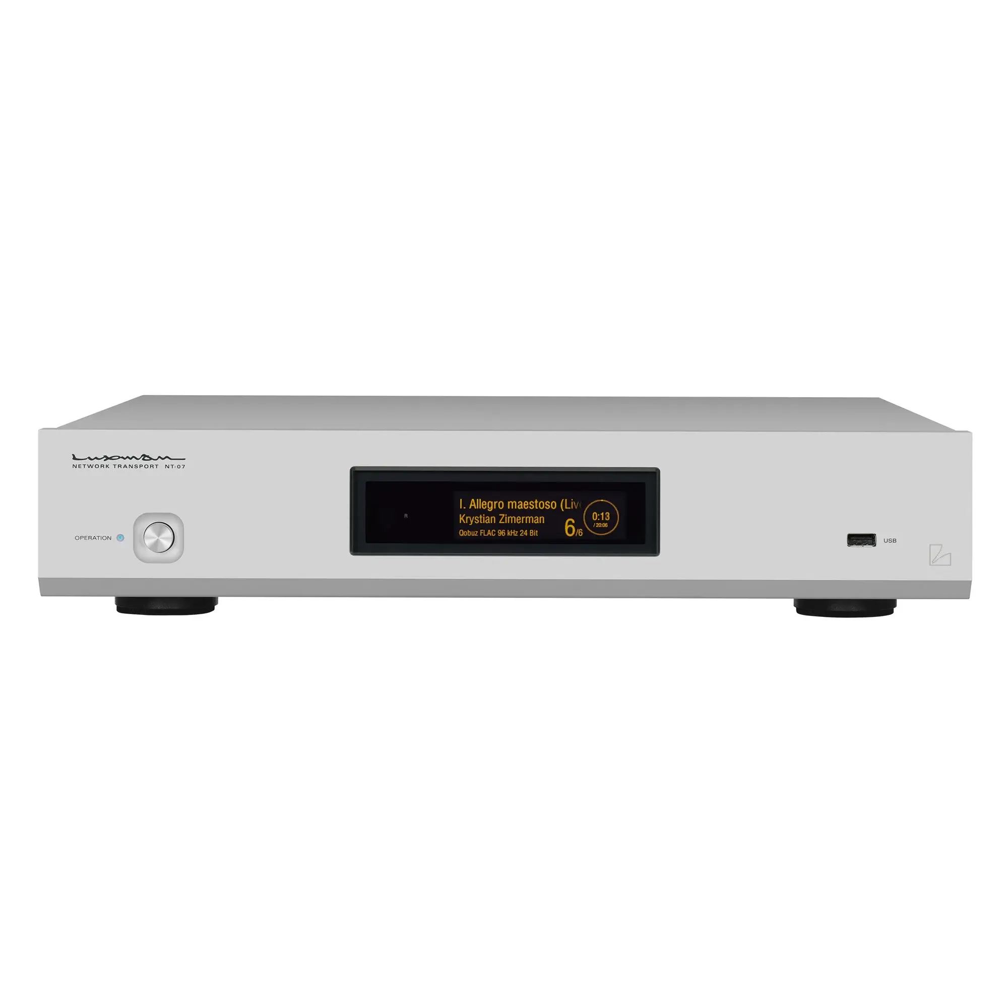 Подсистема USB NT-07 поддерживает частоты дискретизации до 768 кГц/32 бит для файлов PCM и данных DSD 22,5 МГц/1 бит, а оптический/коаксиальный выход обеспечивает воспроизведение PCM с частотой 192 кГц/24 бита. Также имеется встроенная функция базового декодирования для источников звука формата MQA с тремя выбираемыми режимами: «выключено», «основное декодирование» и «сквозное» в зависимости от подключенного цифро-аналогового преобразователя. В центре передней панели расположен большой, легко читаемый электролюминесцентный дисплей высокой четкости, на котором отображается различная информация, такая как название воспроизводимой песни, имя исполнителя, прошедшее время и аудиоформат этих песен. выбранные исходные данные.