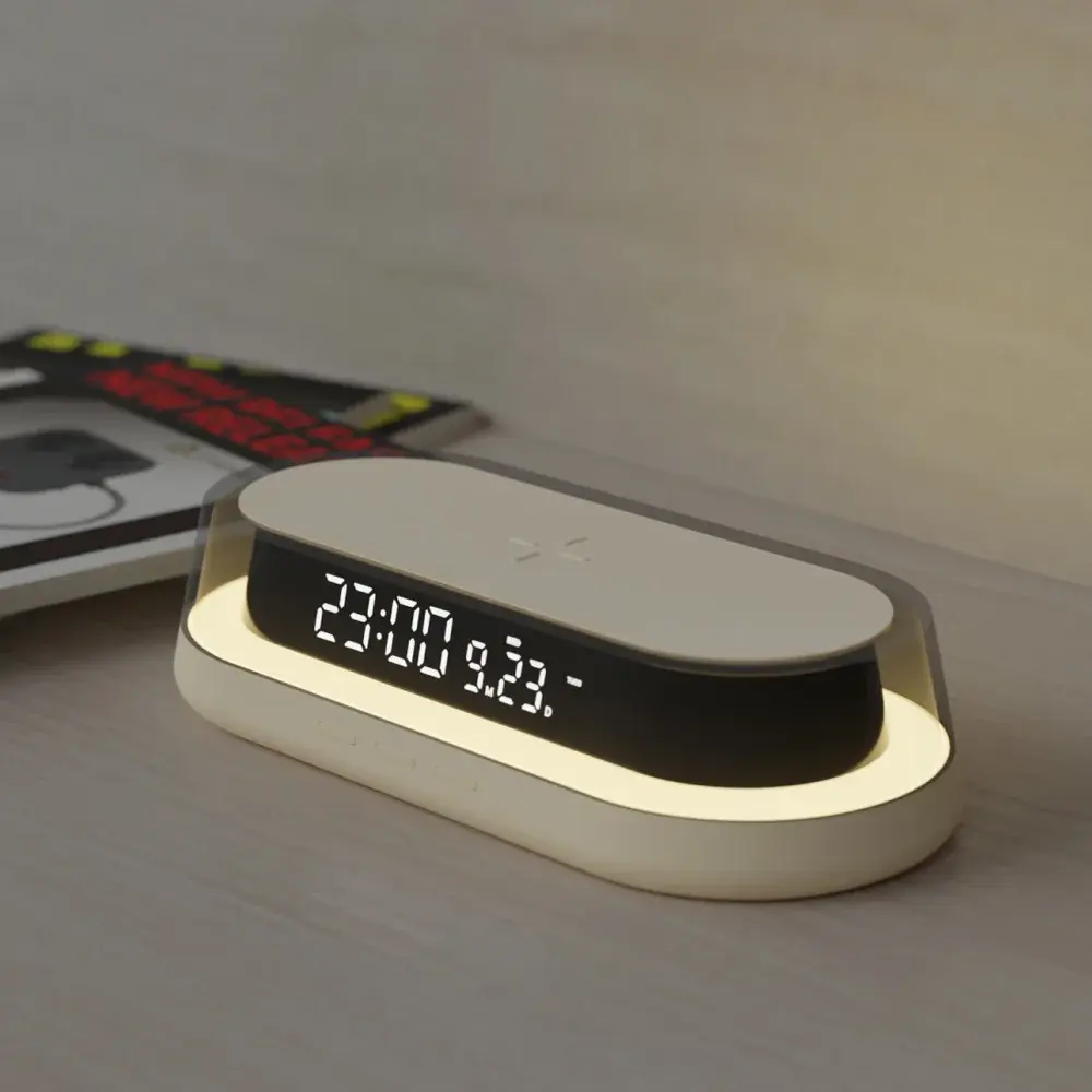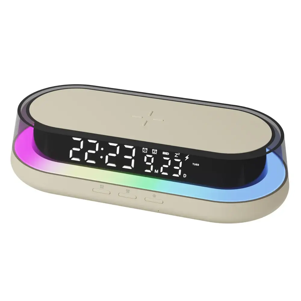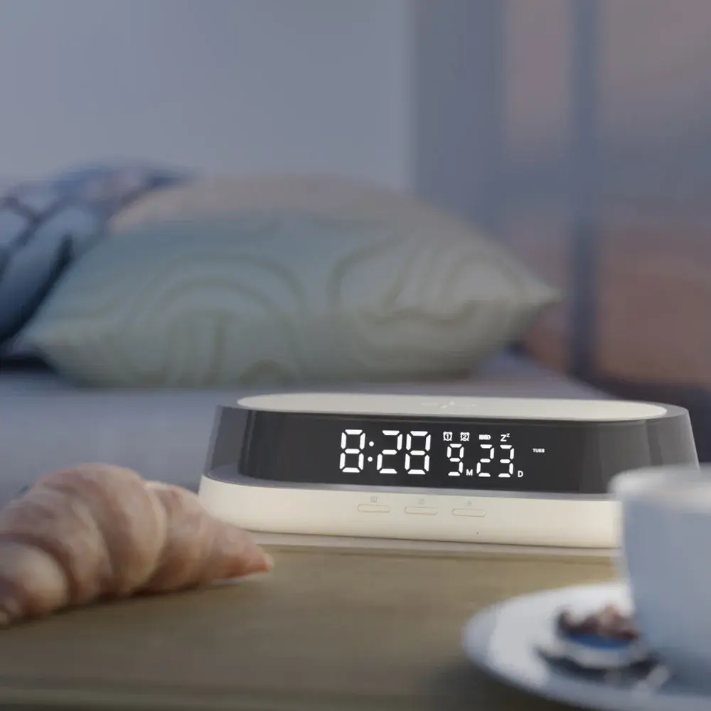 Настольные часы серии AURORA WCW-101 – это красивое и функциональное устройство, которое подойдёт как для дома, так и офиса. Они показывают время, будят по утрам, заряжают ваш телефон, и создают уютную атмосферу благодаря встроенной подсветке с тремя режимами: тёплый и мягкий, яркий свет или весёлый переливающийся RGB.