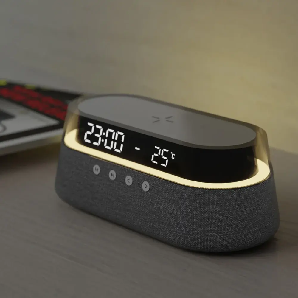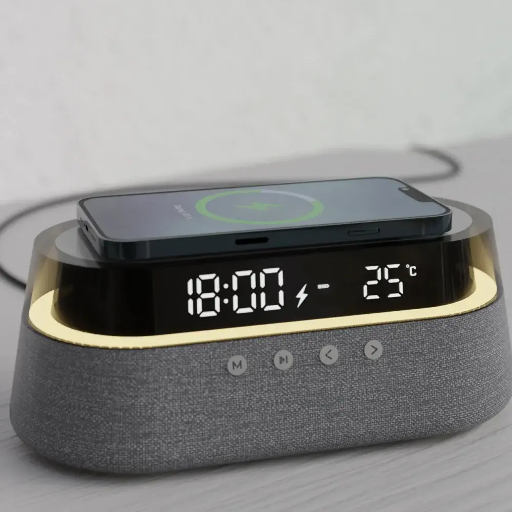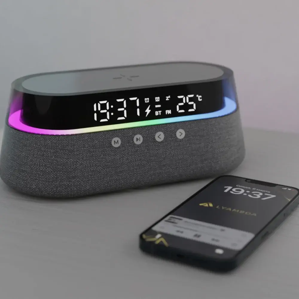 беспроводное зарядное устройство с функцией будильника и Bluetooth колонкой;