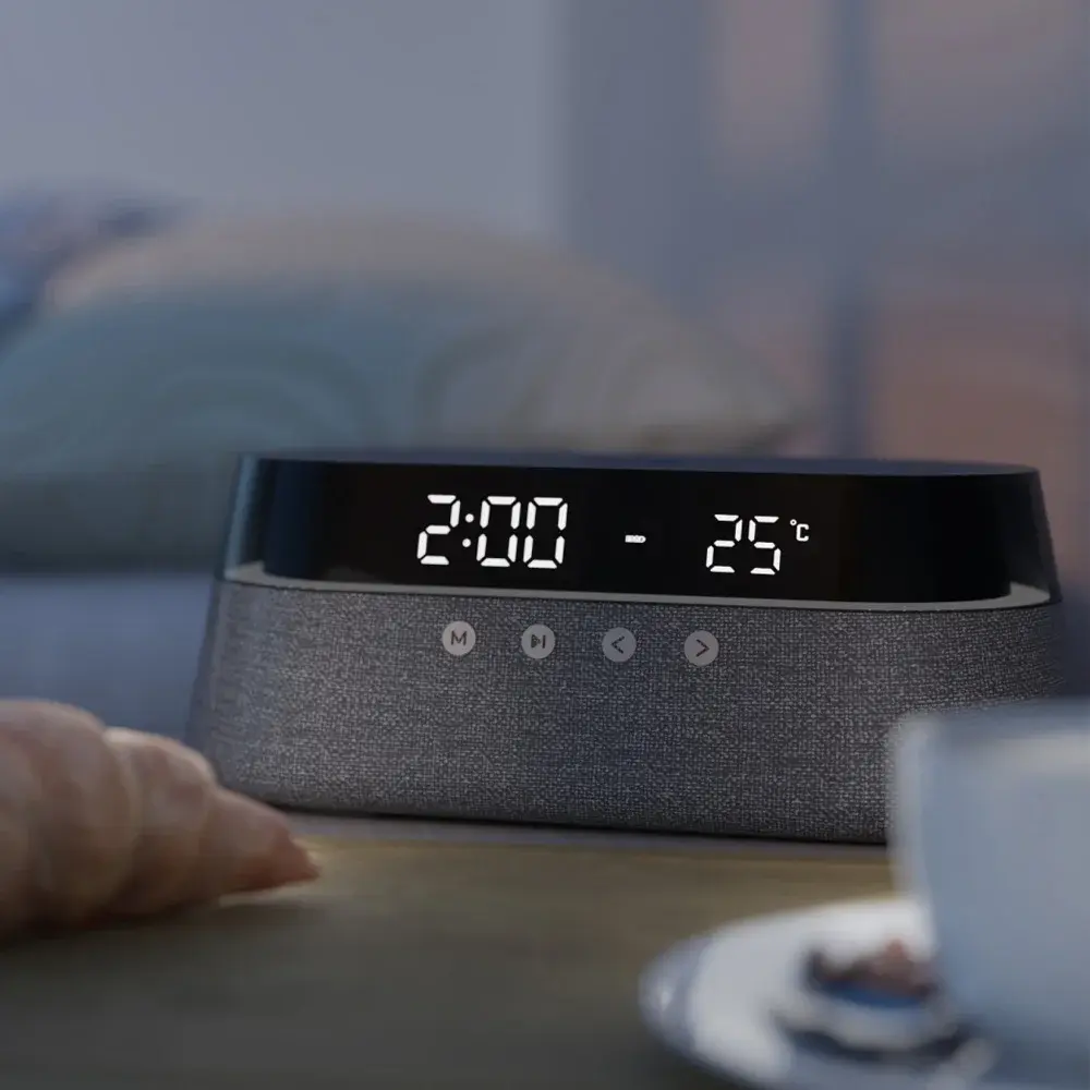 Настольные часы серии AURORA WCW-201 — это стильное и многофункциональное устройство для дома и офиса. Они показывают время, будят по утрам, заряжают ваш телефон, а также добавят настроения с помощью встроенного FM-радио и Bluetooth-динамика. Дополнительно часы оснащены термометром.