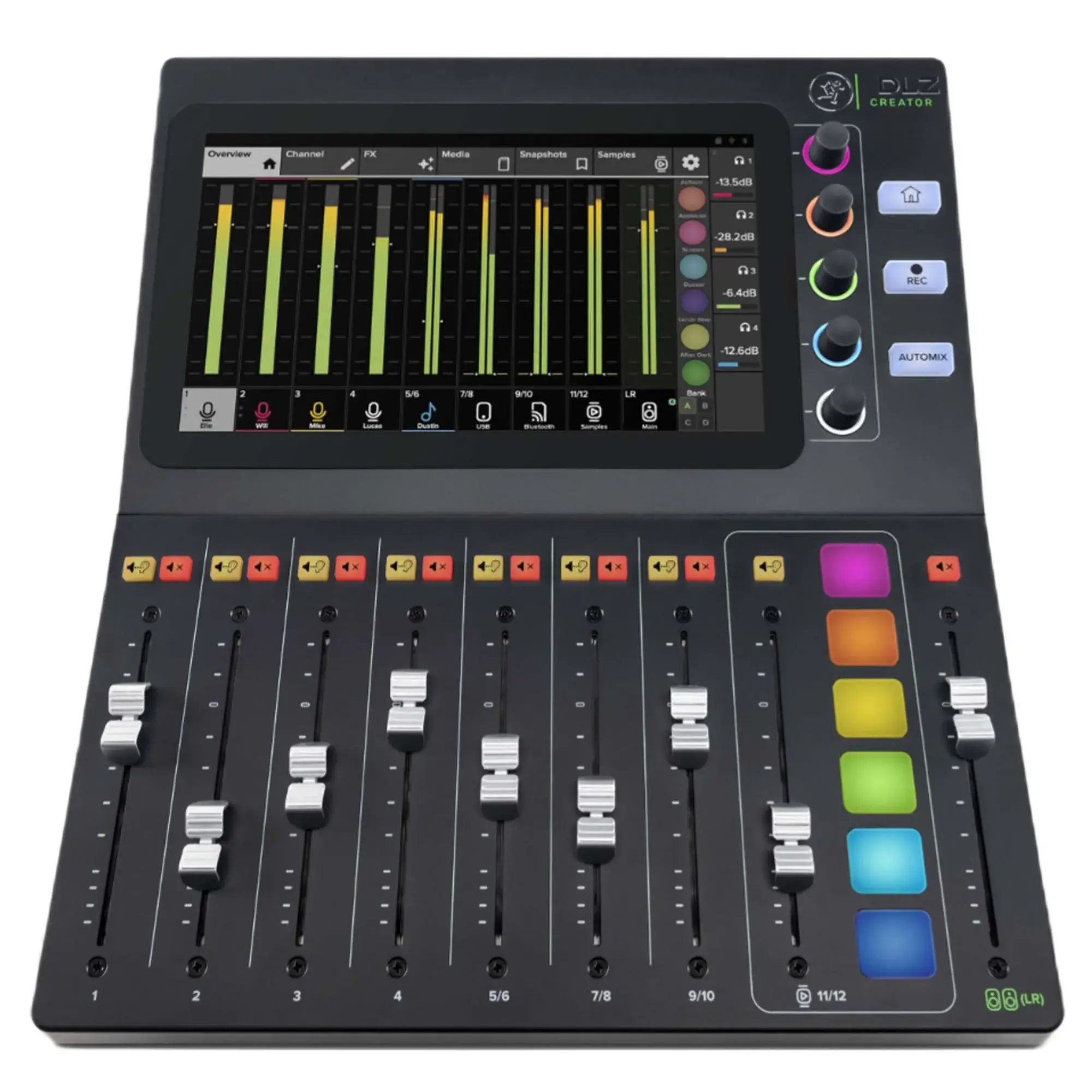 Mackie DLZ Creator – цифровой микшер для подкастеров. Адаптивный цифровой микшерный пульт для подкастинга и потоковой передачи с 10.1” сенсорным дисплеем.