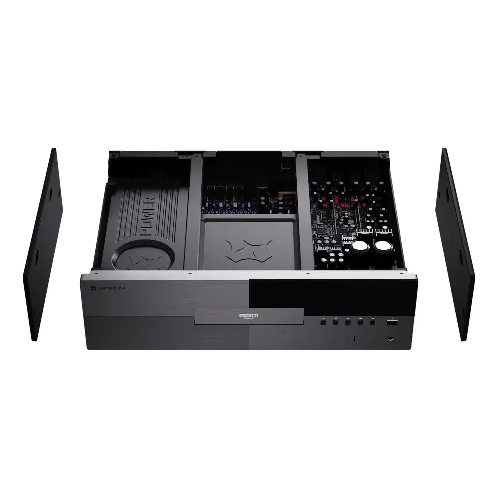 Команда инженеров MAGNETAR понимает, что для достижения исключительных характеристик аудио- и видеосъемки требуется высококачественная конструкция шасси и стабильность. Размеры UDP900: 445x321x133 (включая ножки), вес 15,5 кг, корпус полностью изготовлен из алюминиевого сплава и усилен двухслойной конструкцией шасси. Внутренние основные компоненты независимо экранированы металлическим корпусом, что значительно снижает вибрацию, шум и помехи от внешнего магнитного поля, обеспечивая чистое качество звука и видео высокого разрешения.