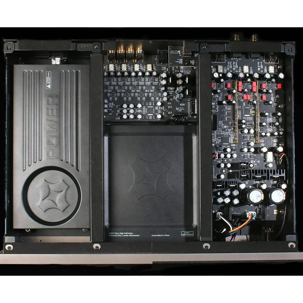 Оснащенный знаменитым профессиональным четырехъядерным чипсетом Media Tek MT8581, 4K UHD Blu-ray плеер UDP900 обладает передовыми технологиями декодирования и обработки изображения с поддержкой 4K ultra HD и HDR, включая Dolby Vision и HDR10+, обеспечивая четкое и резкое изображение и насыщенные цвета. Благодаря металлическому корпусу, элегантному и прочному, высококлассным аудиокомпонентам и трансформатору, изготовленному по индивидуальному заказу, 4K UHD Blu-ray плеер UDP900 воплощает в себе красоту науки и техники в простоте и по своей начинке и делает вашу жизнь еще красочнее.