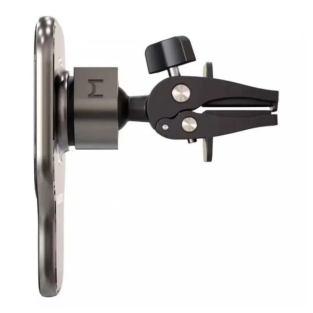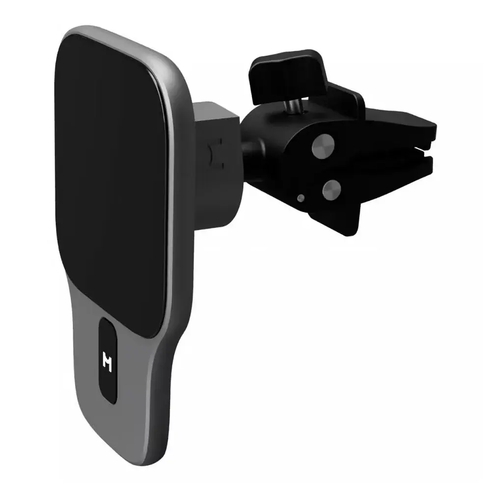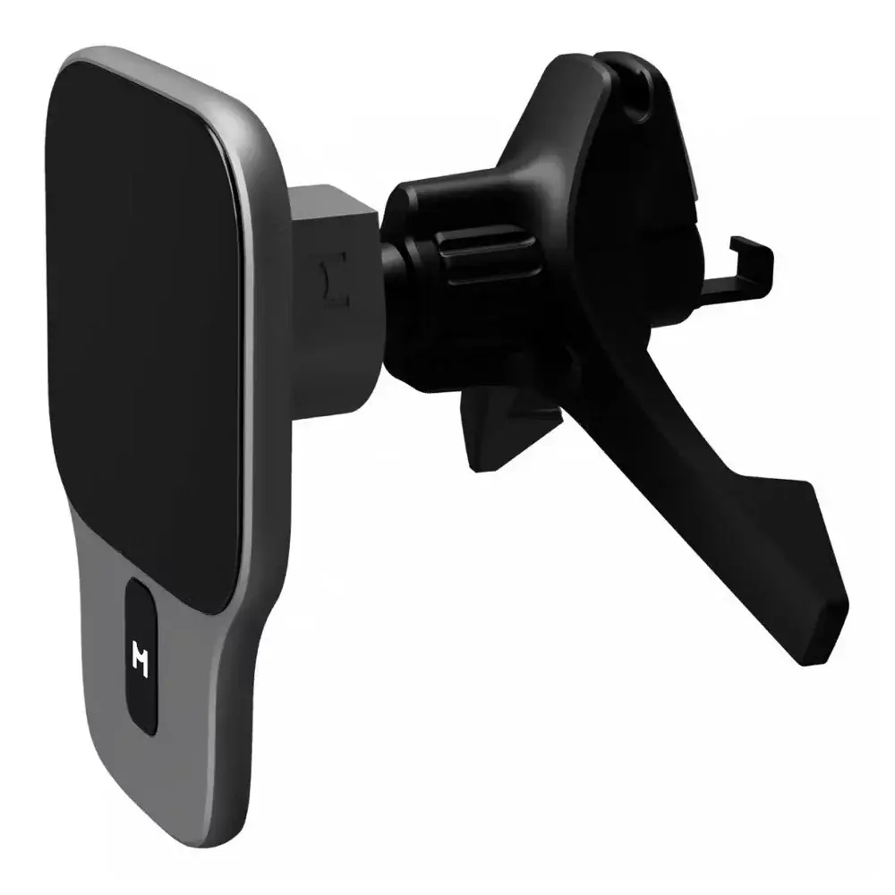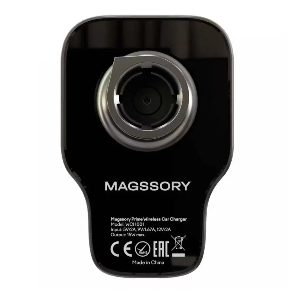 Magssory Prime Magsafe — держатель для вашего автомобиля со встроенной беспроводной зарядкой. Телефон крепится на магнитах, которые выдерживают до 2.5 кг нагрузки. Даже на при резком торможении устройство останется на месте и не соскользнем куда-нибудь под сиденья, отвлекая вас от вождения. Аксессуар поддерживает быструю зарядку (15 Вт) Qi, PD, QC и совместим со всеми устройствами с MagSafe.