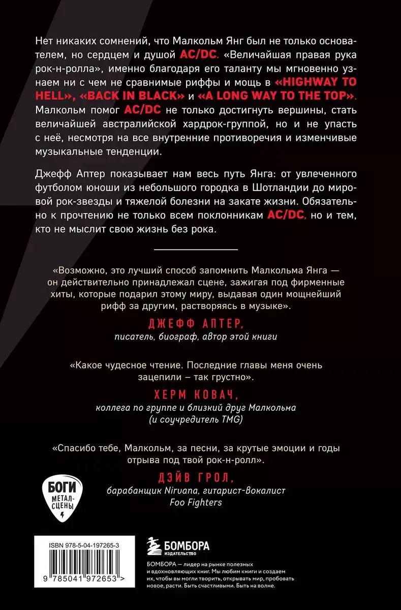 Это первая биография, посвященная исключительно Малкольму Янгу и рассказывающая захватывающую историю его замечательного пути от рабочего в Глазго и общежития для мигрантов в Сиднее до выступлений на крупнейших сценах мира и тяжелой, трагичной болезни на закате жизни.
