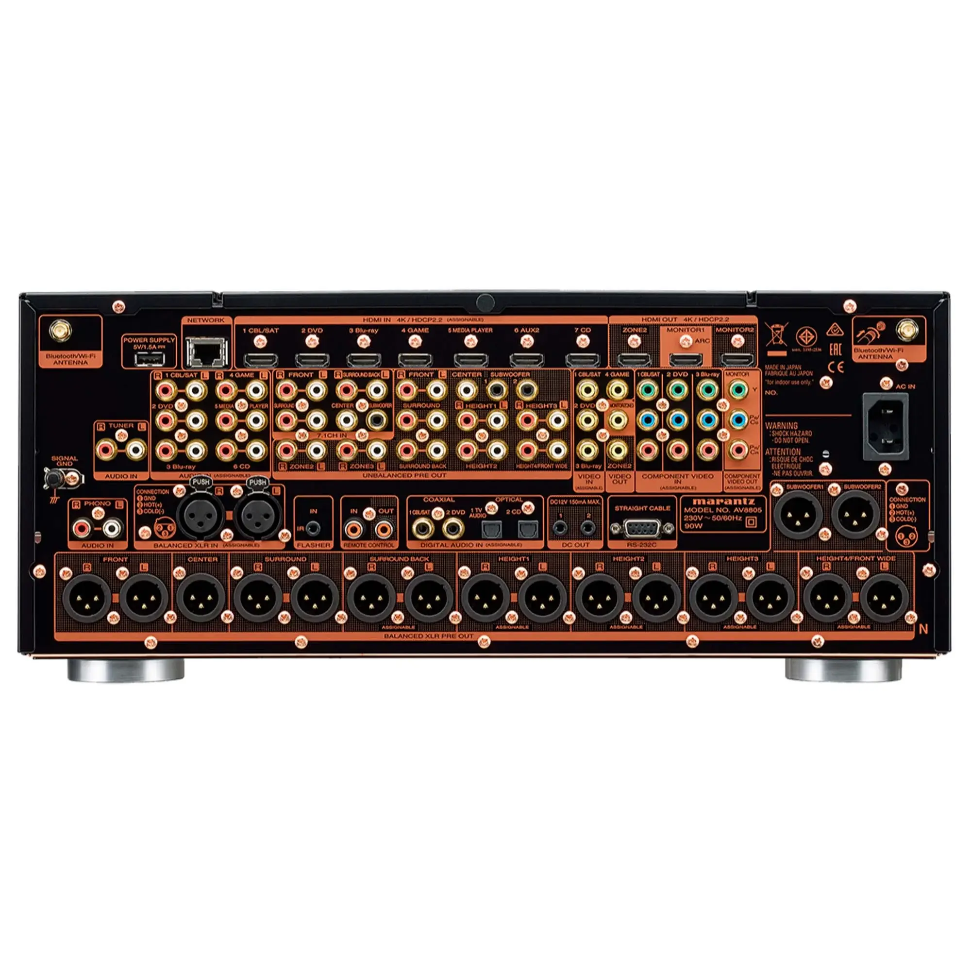 Универсальный процессор/предварительный усилитель Marantz AV8805A поднимает на новый уровень впечатления от просмотра домашнего кинотеатра и прослушивания музыки благодаря 13.2 канальному предусилителю, сквозной передаче 8K видео и поддержке новейших форматов объемного звука: Dolby Atmos, DTS: X, DTS : X Pro, IMAX Enhanced и Auro-3D. Фирменные технологии Marantz позволяют достигнуть качества звучания которым будут восхищаться самые требовательные слушатели. Принимает музыку от ведущих стриминговых сервисов и предоставляет возможность её прослушивания в разных помещениях благодаря встроенному модулю HEOS. С новым Marantz AV8805A вы получаете невероятную точность воспроизведения и непревзойденную музыкальность.