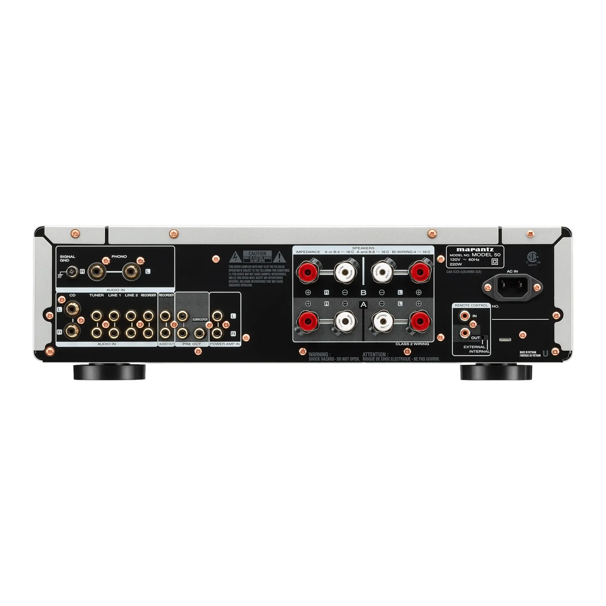 Marantz Model 50 – интегральный усилитель. Это идеальный интегральный усилитель. Благодаря уникальной токовой обратной связи Marantz мощностью 70 Вт на канал и схеме HDAM SA-3 этот усилитель обеспечивает полный контроль над громкоговорителями. Теплый, насыщенный и объемный звук. Элегантный на вид. Marantz 50 представляет собой идеальный баланс между вечным и современным.