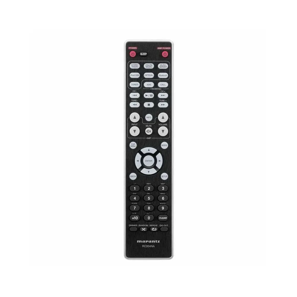 Помимо цифровых разъемов модель получила четыре линейных входа, выход для записи и разъем для подключения сабвуфера. Также имеется ИК-гнездо и разъемы системной шины, а для подсоединения АС служат восемь винтовых клемм, с помощью которых можно легко организовать двухпроводное подключение. На фронтальной панели находится 6,3 мм гнездо для наушников. Пульт усилителя позволяет управлять CD-проигрывателем Marantz.