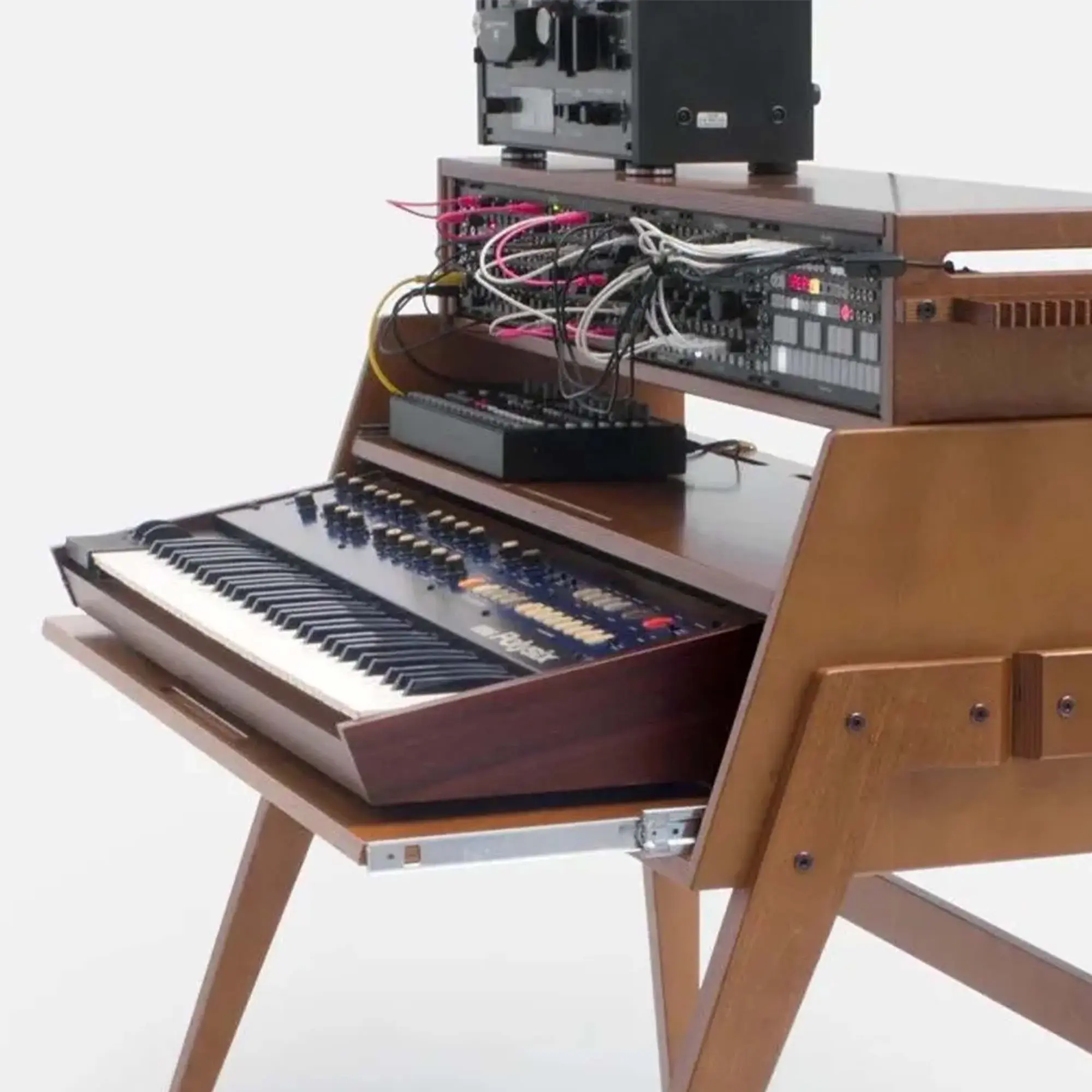 Студийный стол для звукового оборудования предназначен для удобного расположения контроллеров, интерфейсов, микшеров и инструментов на рабочем месте. Позволяет установить и подключить рэковое оборудование, уложить кабели и расположить мониторы для оптимального звучания и мониторинга.