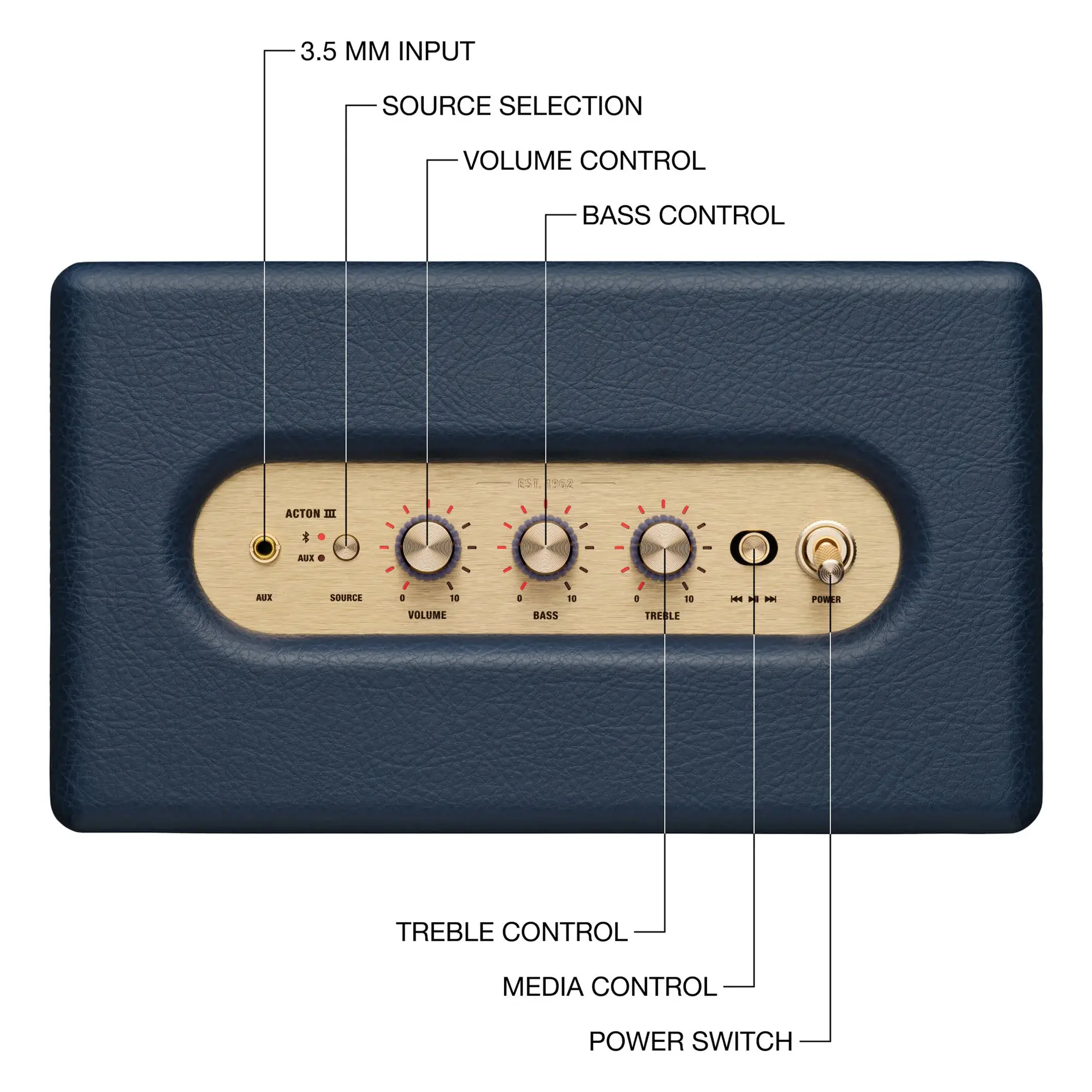 Acton III имеет еще более широкий звуковой диапазон, чем ее предшественница, обеспечивая фирменное звучание Marshall, которое было модернизировано для более полного погружения в пространство.