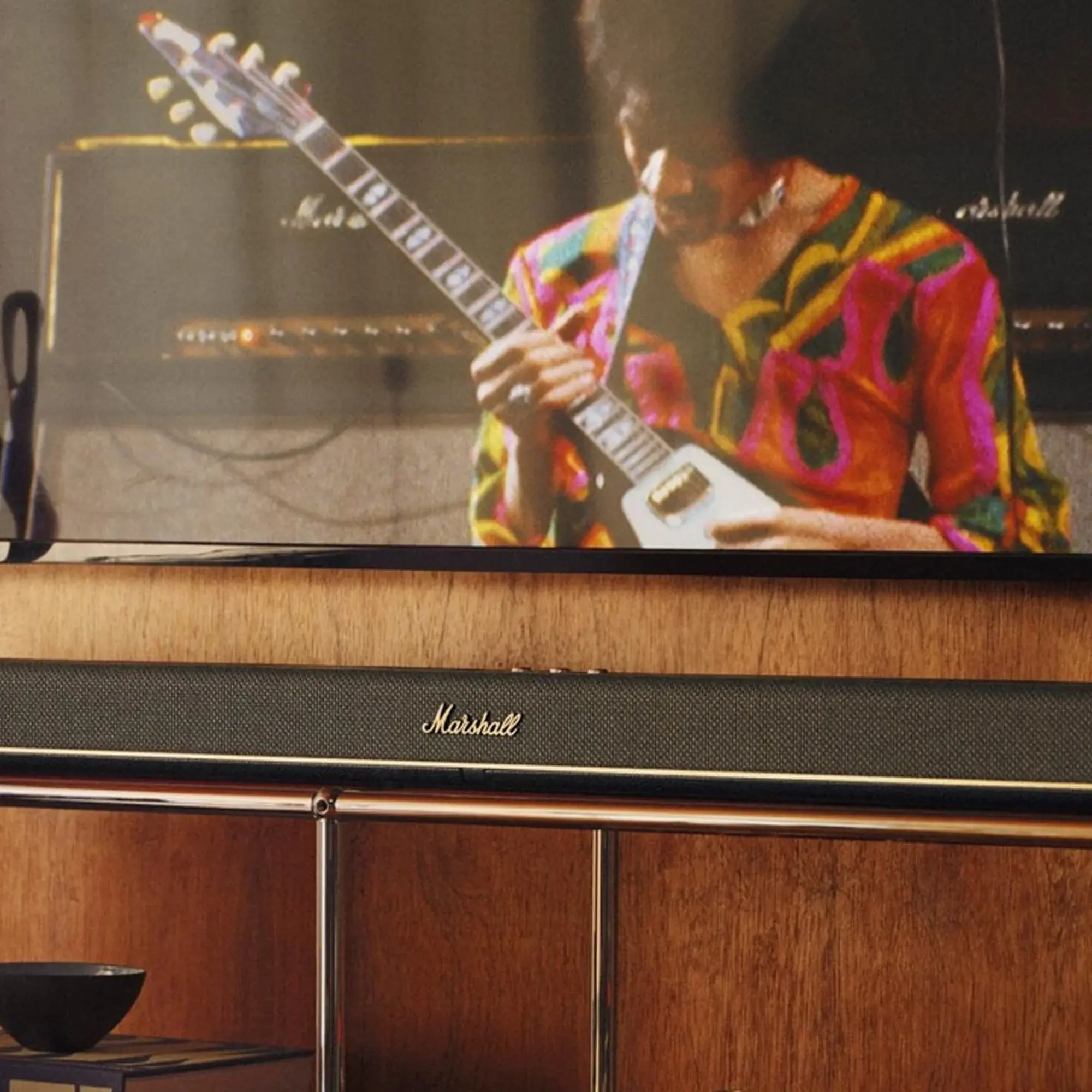 Marshall Heston 120 - это первый саундбар, разработанный британской компанией Marshall, известной своими легендарными гитарными усилителями и аудиотехникой. Эта модель сочетает в себе мощное звучание, стильный дизайн в духе рок-н-ролла и современные технологии, чтобы превратить домашний кинотеатр в по-настоящему эмоциональный и захватывающий опыт.