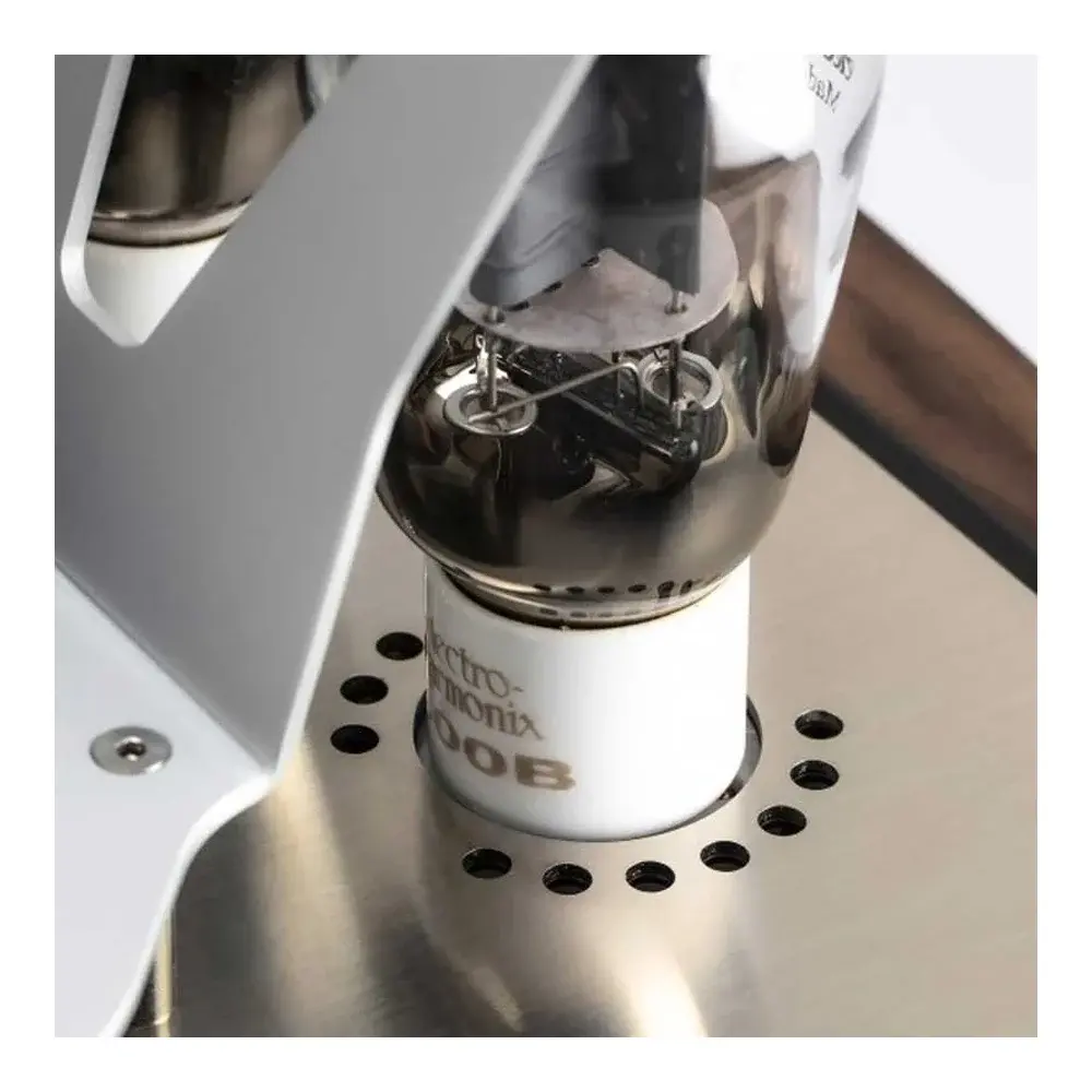 Этот усилитель также отличается необыкновенно широкой, глубокой и сбалансированной звуковой сценой. Достижению высочайшего качества звука способствует и максимально придирчивый отбор индивидуальных компонентов: по критериям высочайшего качества, надежности и доступности с течением времени. Корпус усилителя отделан натуральным итальянским ореховым шпоном, алюминиевые детали отшлифованы вручную, а шасси выполнено из антимагнитной нержавеющей стали марки AISI 304.