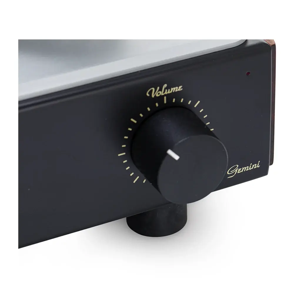 Mastersound Gemini – пушпульный ламповый интегрированный усилитель с мощностью 2 х 50 Вт в пентодном режиме, 2 х 25 Вт в триодном режиме, работающий в чистом классе A. Усилитель построен на лампах 2 х ЕСС802, 4 х КТ150, для правильной работы имеется функция автоматического смещения Automatic Bias. Усилитель оборудован XLR-входами, поставляется с пультом ДУ.