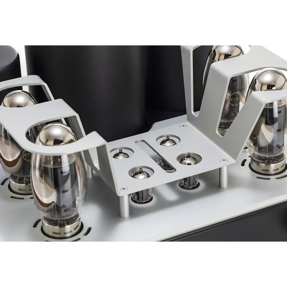 Интегральный ламповый усилитель, имеющий «пуш-пульную» пентодную конструкцию (с возможностью переключения в триодный режим), обеспеченную очень музыкальными выходными лампами прямого накала — КТ 150, в сочетании с высококлассными трансформаторами собственного производства. Фирменный звук, натуральность тембра, прекрасная сцена и феноменальная реалистичность, заключенная в прекрасное дизайнерское исполнение от лучших итальянских мастеров.