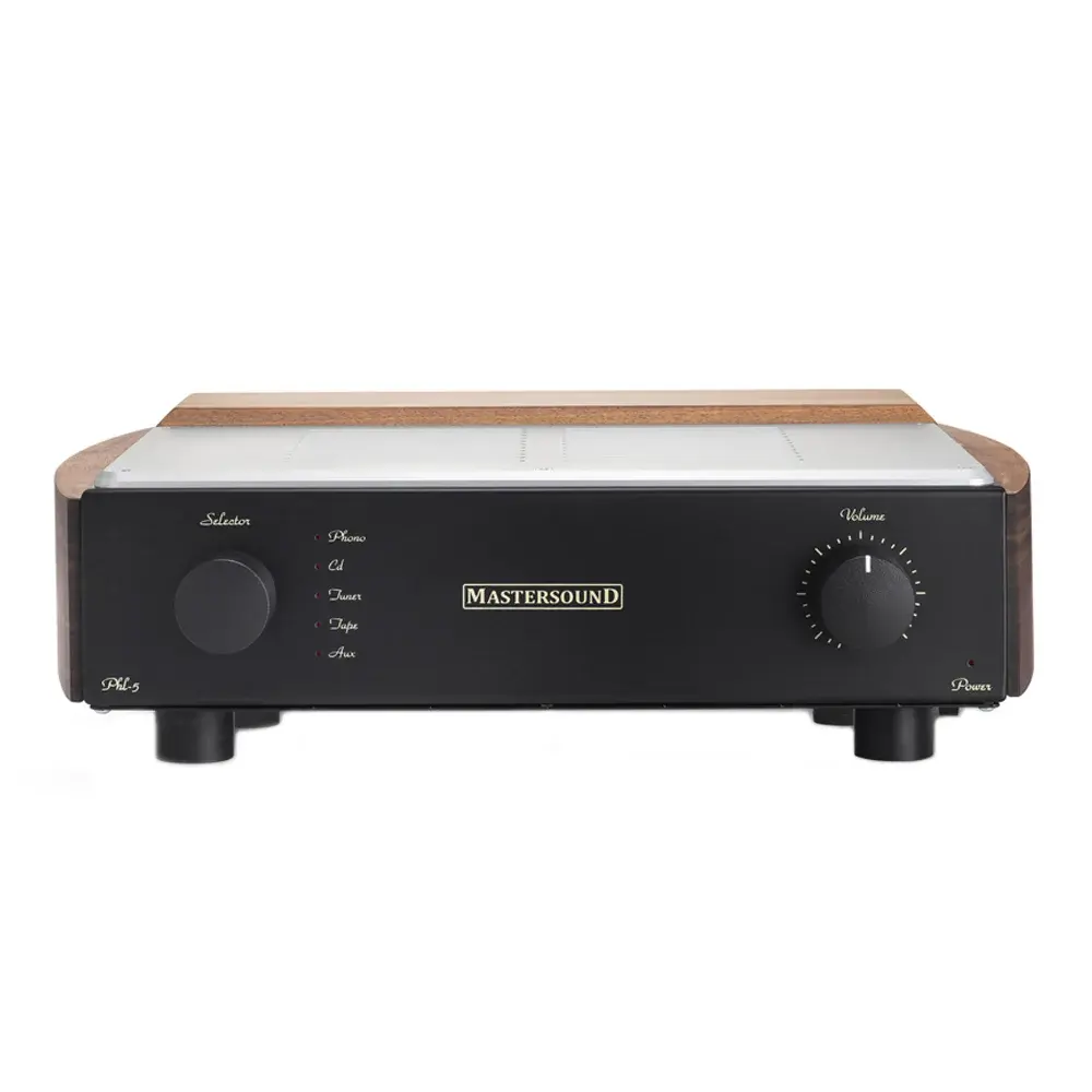 Mastersound PHL5 – ламповый предварительный усилитель, работающий в классе A, с встроенным фонокорректором и пультом ДУ. Поддерживает форму кривой эквализации RIAA с точностью +/- 0.5 дБ.