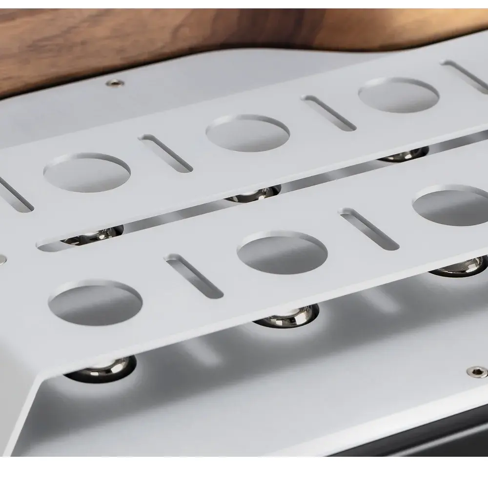 Натуральное дерево, тонко обработанное итальянскими мастерами, придает усилителям звука Master их итальянский стиль, делая их уникальными и неподвластными времени. Корпус изготовлен из стали, материала, который не только требует меньше энергии и тепла для производства, но и является по-настоящему экологичным, поскольку его можно переплавлять и использовать повторно.