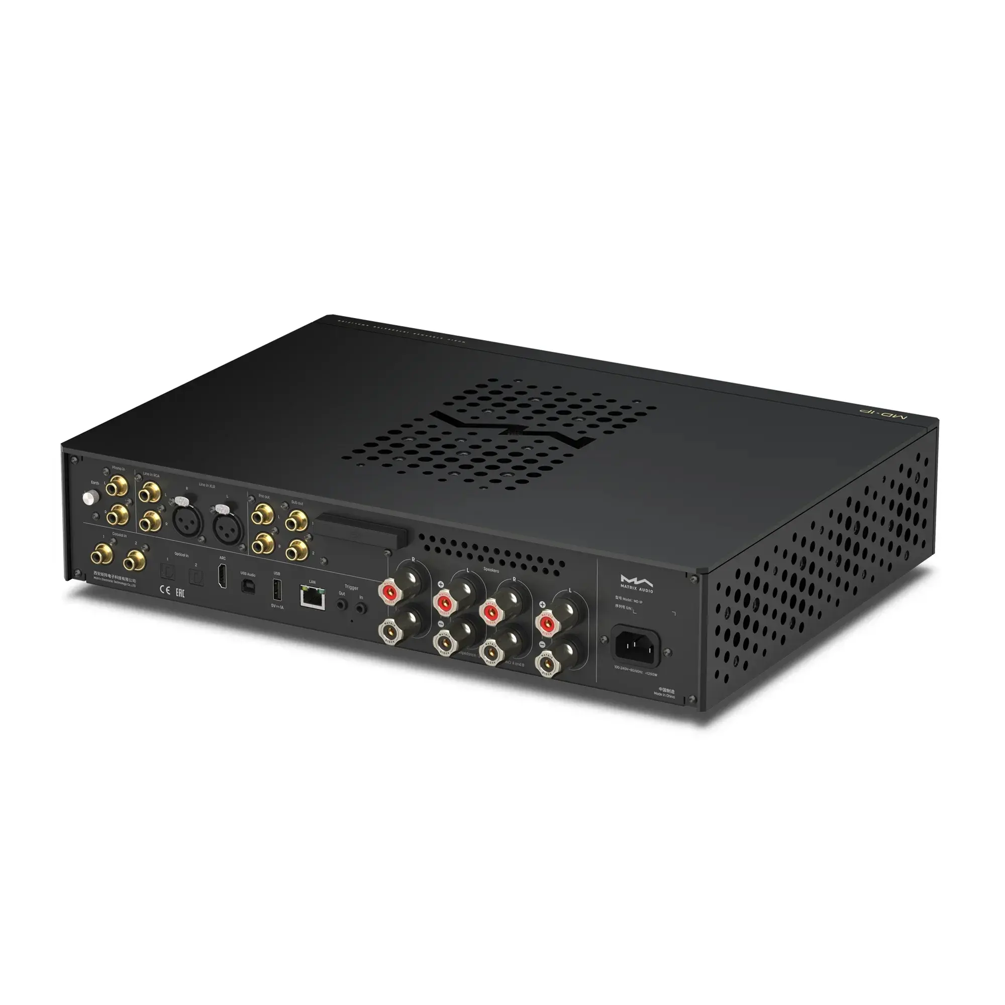 Matrix Audio MD-1P объединяет интегральный усилитель с фонокорректором, стримером и ЦАП в одном устройстве. Просто добавьте колонки и получите готовую музыкальную систему Hi-Fi-уровня. MD-1P обеспечивает 300 Вт на канал при 8 Ом, которых достаточно для уверенной работы как с полочными, так и с напольными колонками. Используя высокоэффективную технологию усиления, этот аппарат способен выдать высокую мощность при меньшем потреблении энергии, снижая тепловыделение. Усовершенствованная технология обработки сигнала PWM эффективно минимизирует искажения аудиосигнала. Чистое и детальное звучание MD-1P соответствует самым строгим требованиям к качеству звука. Две пары высококачественных акустических клемм из чистой меди обеспечивают низкое сопротивление и надёжное подключение кабелей колонок, сохраняя каждую деталь аудиосигнала. Можно одновременно скоммутировать две пары колонок и переключать их для удобства сравнения. Или подключить одну пару акустики по схеме bi-amping.