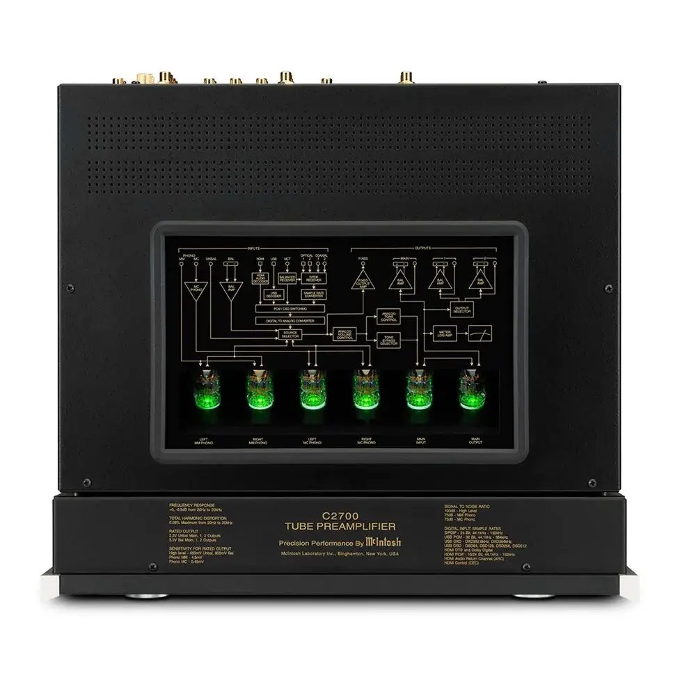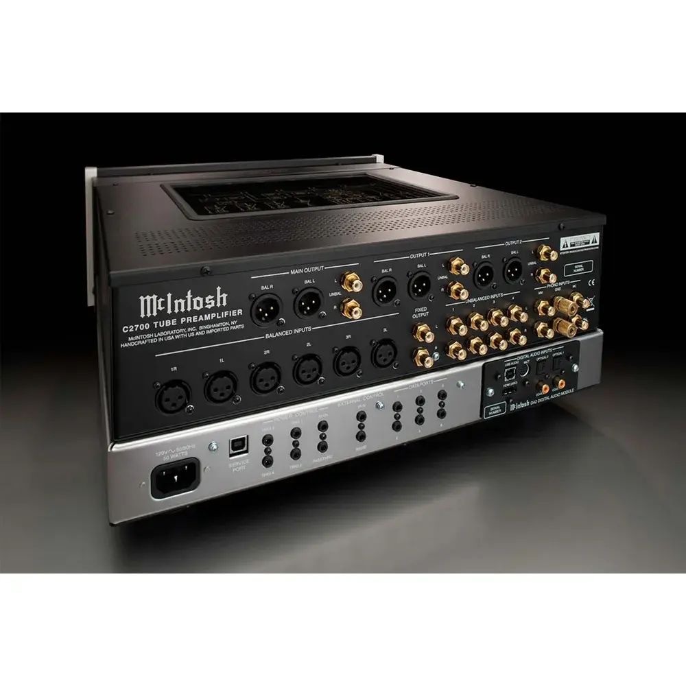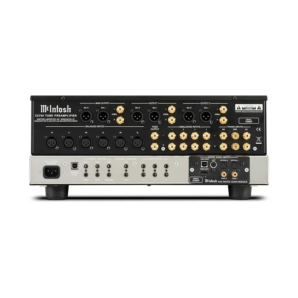 Ламповый 2-х канальный предусилитель McIntosh C2700 - следующий в почетной линейке предварительных усилителей Mcintosh. Используя нашу хорошо зарекомендовавшую себя топологию вакуумных ламп, C2700 также оснащен самым передовым цифровым аудиомодулем DA2. Достойный преемник нашего популярного цифрового аудиомодуля DA1, новый модуль DA2 обладает расширенным набором возможностей. Он предлагает 7 цифровых входов, включая все те же соединения, которые имеются на DA1 (2 коаксиальных, 2 оптических, 1 USB и 1 MCT), а также новое соединение для аудио - HDMI Audio Return Channel (ARC). Поддерживаются популярные многоканальные аудиоформаты Dolby® и DTS®, которые будут преобразованы в 2-канальные для правильного воспроизведения. C2700 может контролировать мощность и громкость телевизора, когда связь CEC включена как в предварительном усилителе, так и в телевизоре. Помимо новых функций HDMI (ARC), имеющихся в DA2, его USB-вход получил возможность воспроизведения DSD до DSD512 по сравнению с пределом DSD256 в DA1.