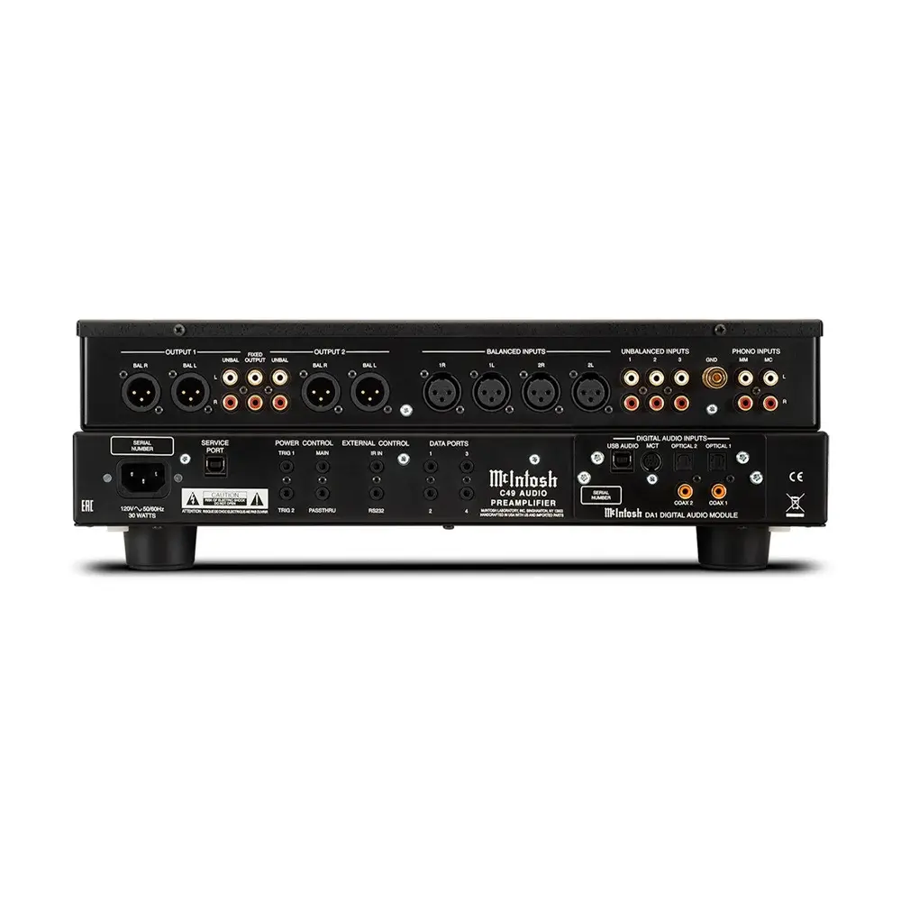 Для подключения к усилителю и остальной домашней аудиосистеме C49 имеет 2 балансных регулируемых выхода, 2 небалансных регулируемых выхода и 1 небалансный фиксированный выход. Выходы предназначены для удобного использования при двухполосном усилении ваших динамиков. Ваши аудиоисточники можно точно настроить с помощью регуляторов низких и высоких частот. C49 может быть легко интегрирован в систему домашнего кинотеатра с помощью Home Theater Pass Through. Порты управления питанием позволяют легко включать / выключать другие подключенные компоненты McIntosh, в то время как порты данных могут отправлять команды удаленного управления на подключенные исходные компоненты. Наш усилитель для наушников High Drive с функцией Headfe Crossfeed Director (HXD®) также входит в комплект. C49 выполнен в классическом дизайне McIntosh, с такими элементами, как передняя панель из черного стекла, ручки, логотип с подсветкой и алюминиевая отделка. Соедините его с различными усилителями, виниловыми проигрывателями, проигрывателями компакт-дисков, тюнерами, динамиками, контроллерами питания и устройствами для коррекции помещений, чтобы создать полноценную домашнюю аудиосистему. Свяжитесь с вашим местным дилером, чтобы узнать больше.